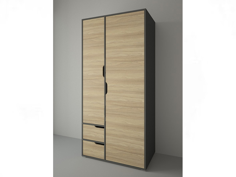 Шкаф для одежды с ящиками (серый графит – блэквуд ячменный)