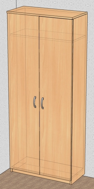 Шкаф офисный для одежды Ш2 1900*800*350 изготовлен из ламинированной ДСП. Все видимые кромки облицованы лентой ПВХ. Цвет ДСП – бук бавария.