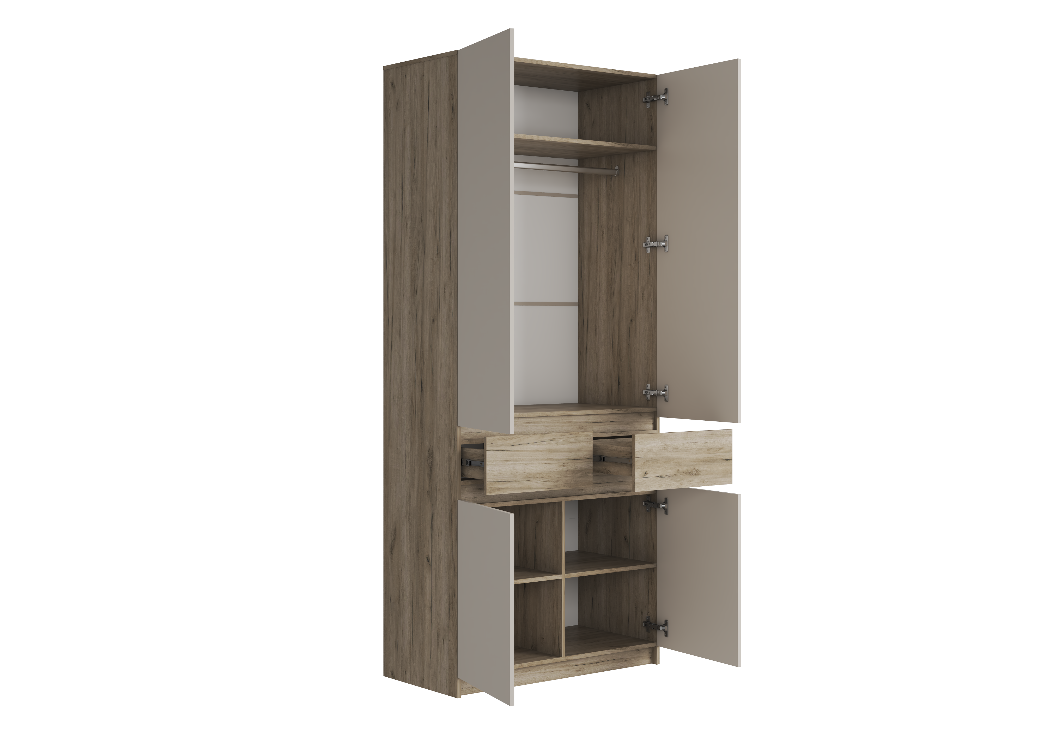 Шкаф двустворчатый «Бохо ШК-001» (крафт серый/кашемир)
