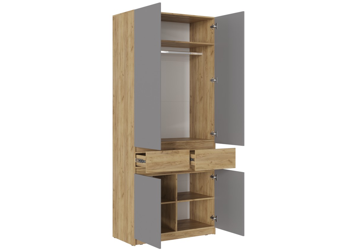Шкаф распашной «Марвэл» 4-х дв высота 240 с доп ящиками (дуб крафт золотой - браш мени грин)