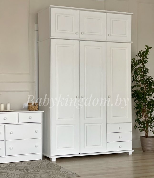 Шкаф из массива «Фалько-2» (c антресолью, без зеркала, белый воск)