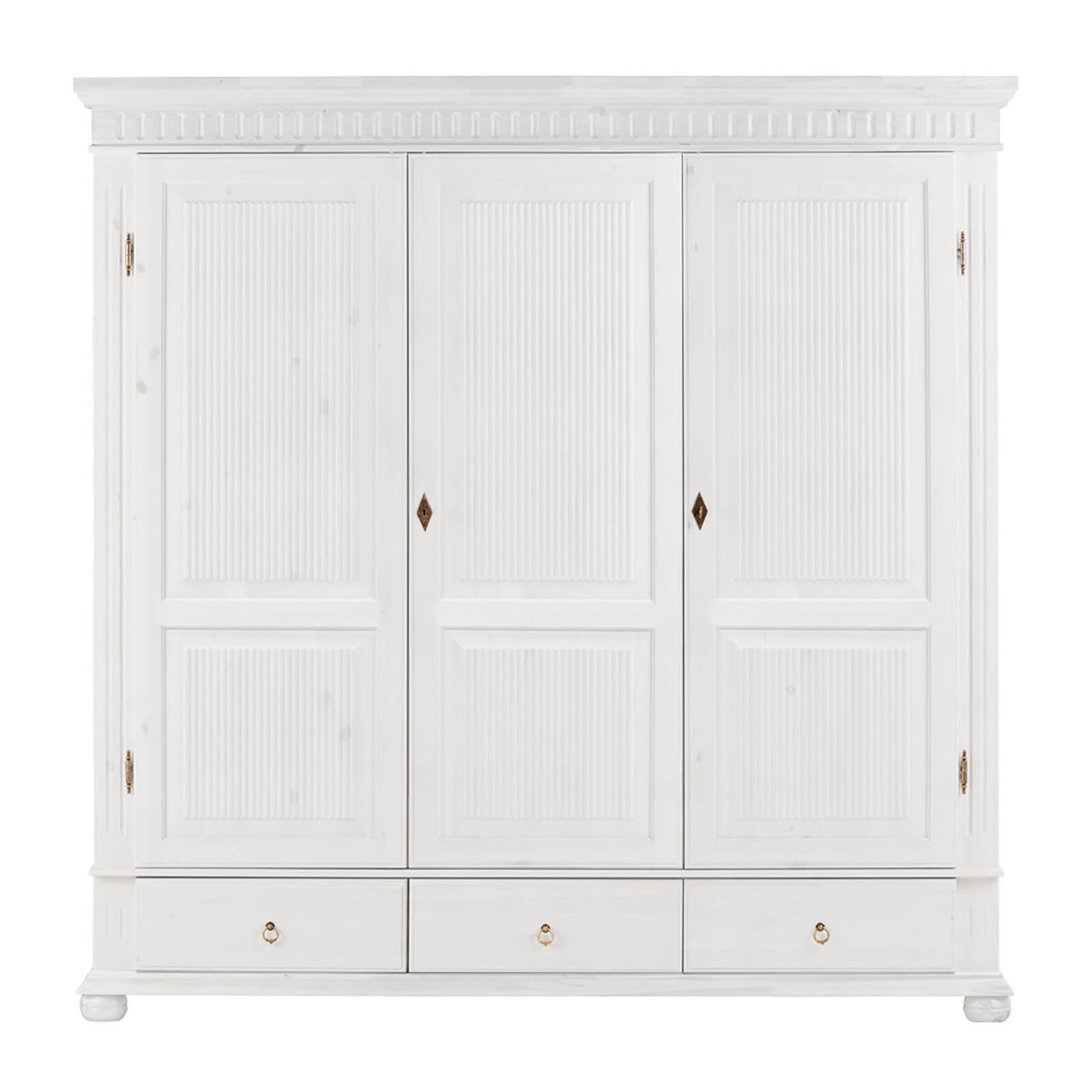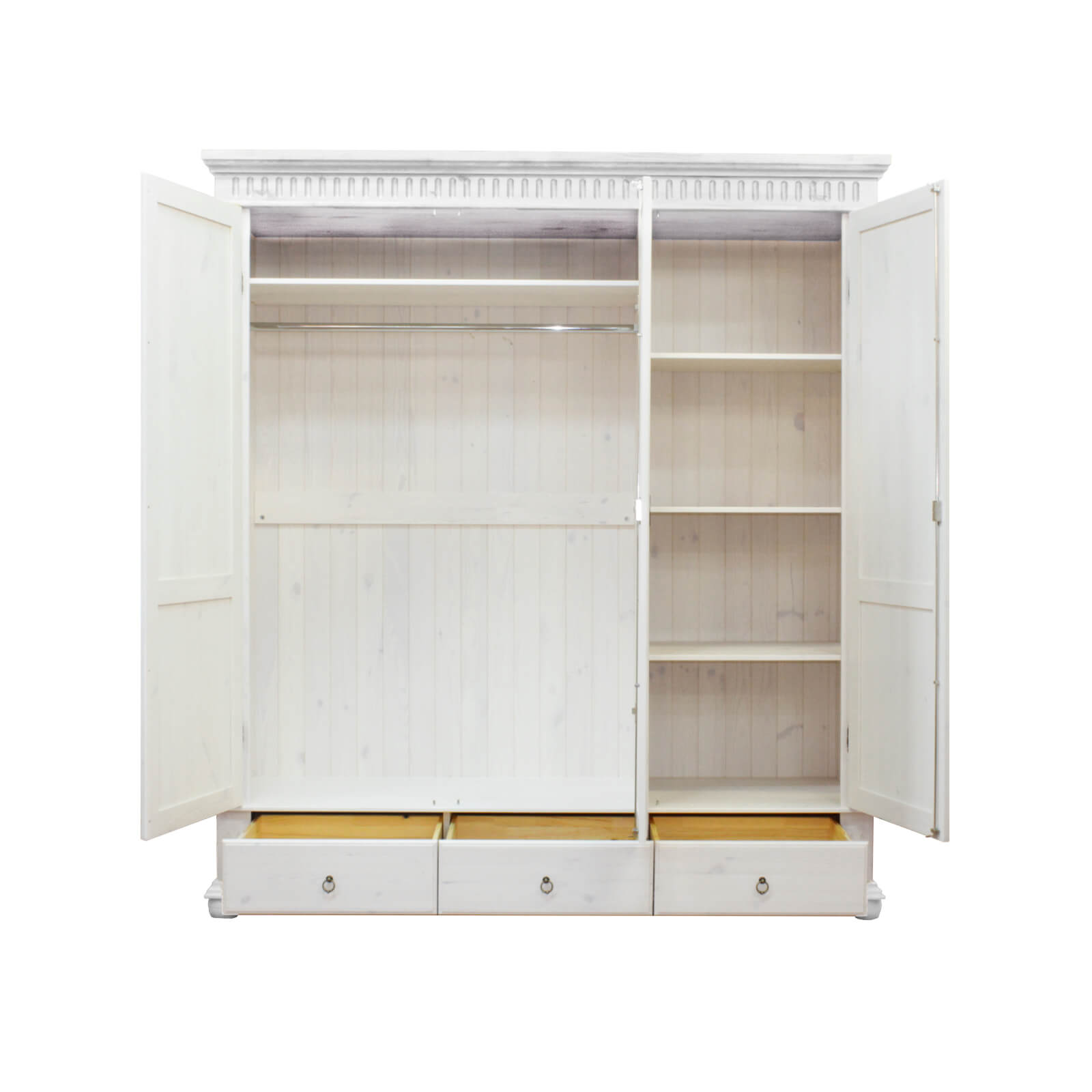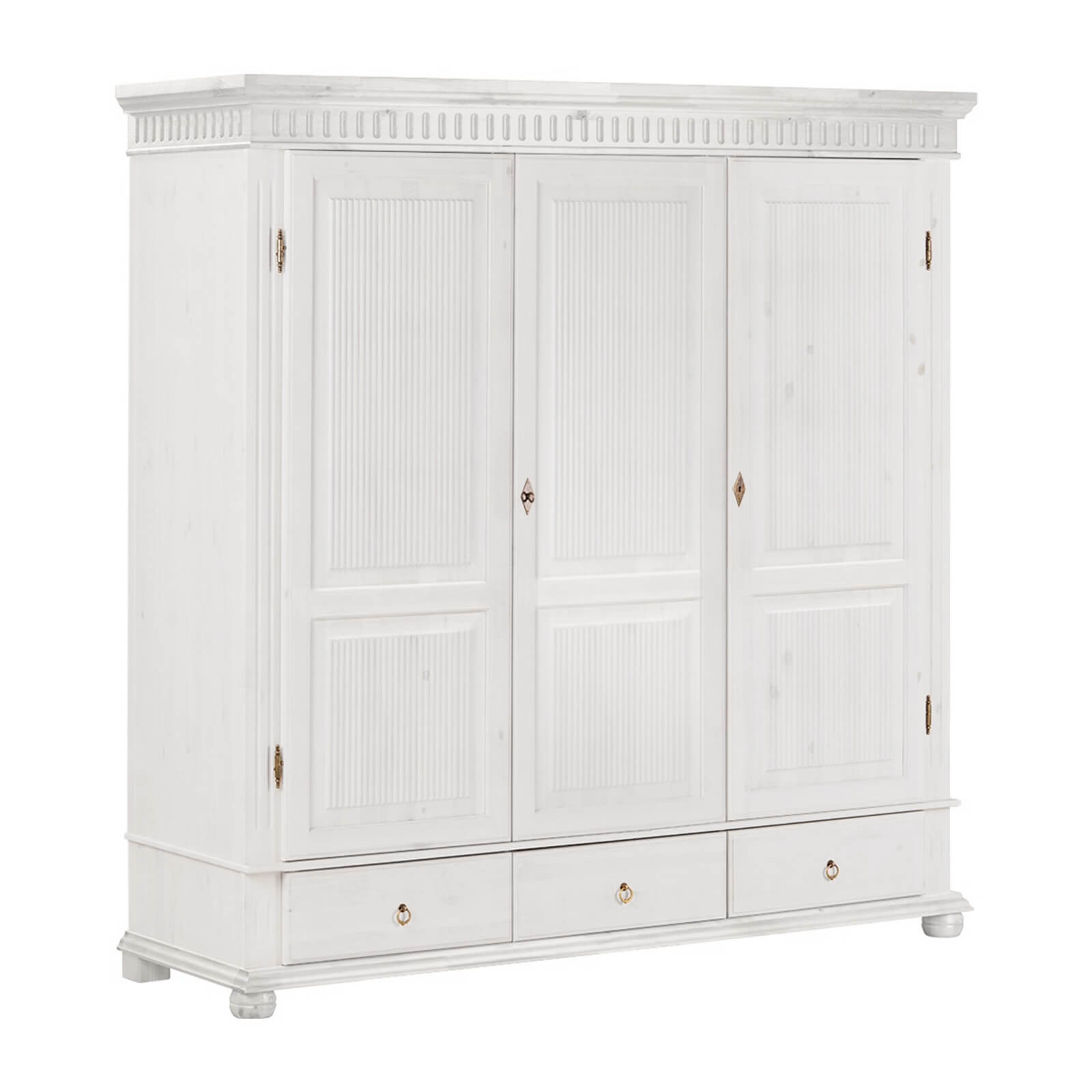 Шкаф Хельсинки 3GTM с тремя распашными дверями надежно сохранит ваши личные вещи от пыли, шерсти животных и других неприятностей. Его даже можно запереть на ключ. Внутри есть большая секция для одежды со штангой и секция поменьше с 4 полками, а внизу гармонично расположены 3 выдвижных ящика. Задняя стенка выполнена из массива.Есть возможность установить дополнительные полки.