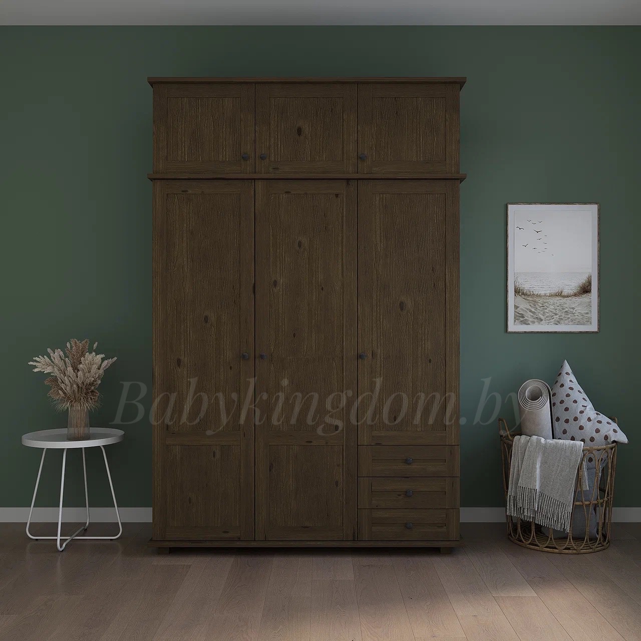 Шкаф из массива сосны «Форест-2» с антресолью, с зеркалом (антик)