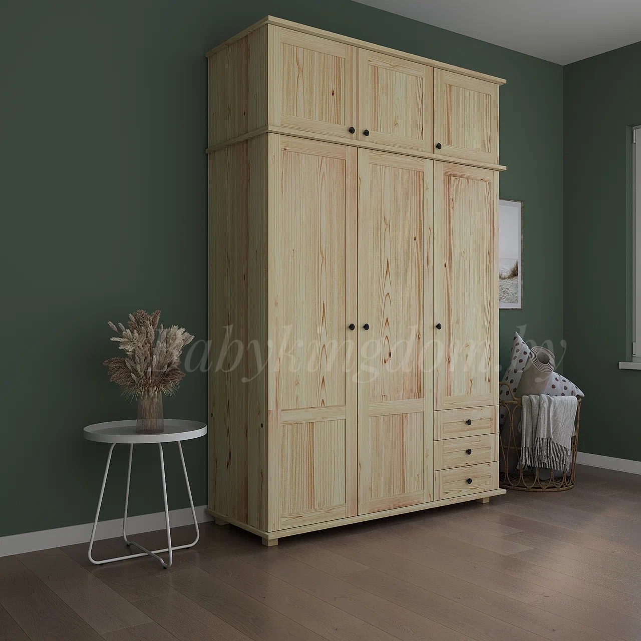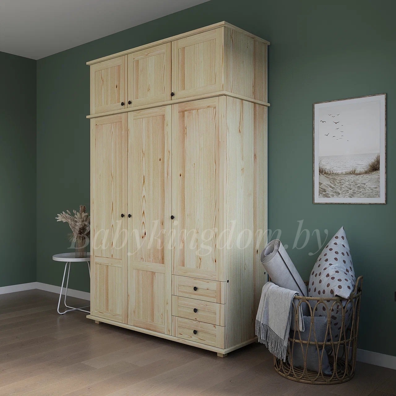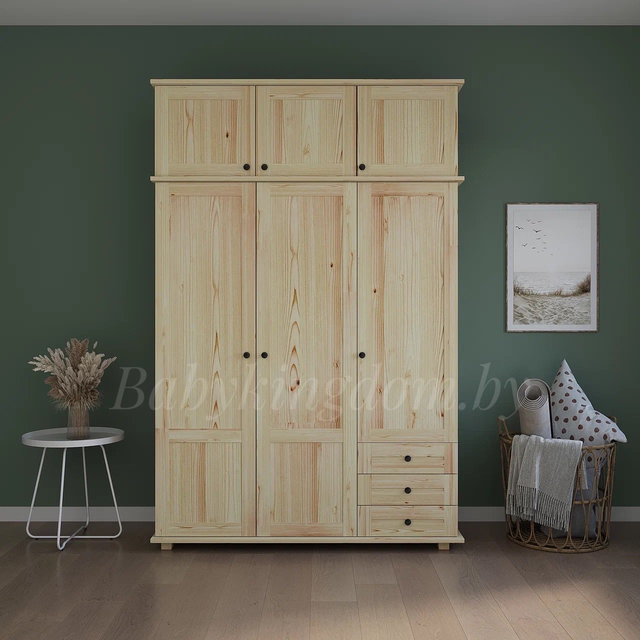 - Материал: шкаф изготовлен из массива сосны — натурального и экологически чистого материала. Это обеспечивает долговечность и надежность изделия.
