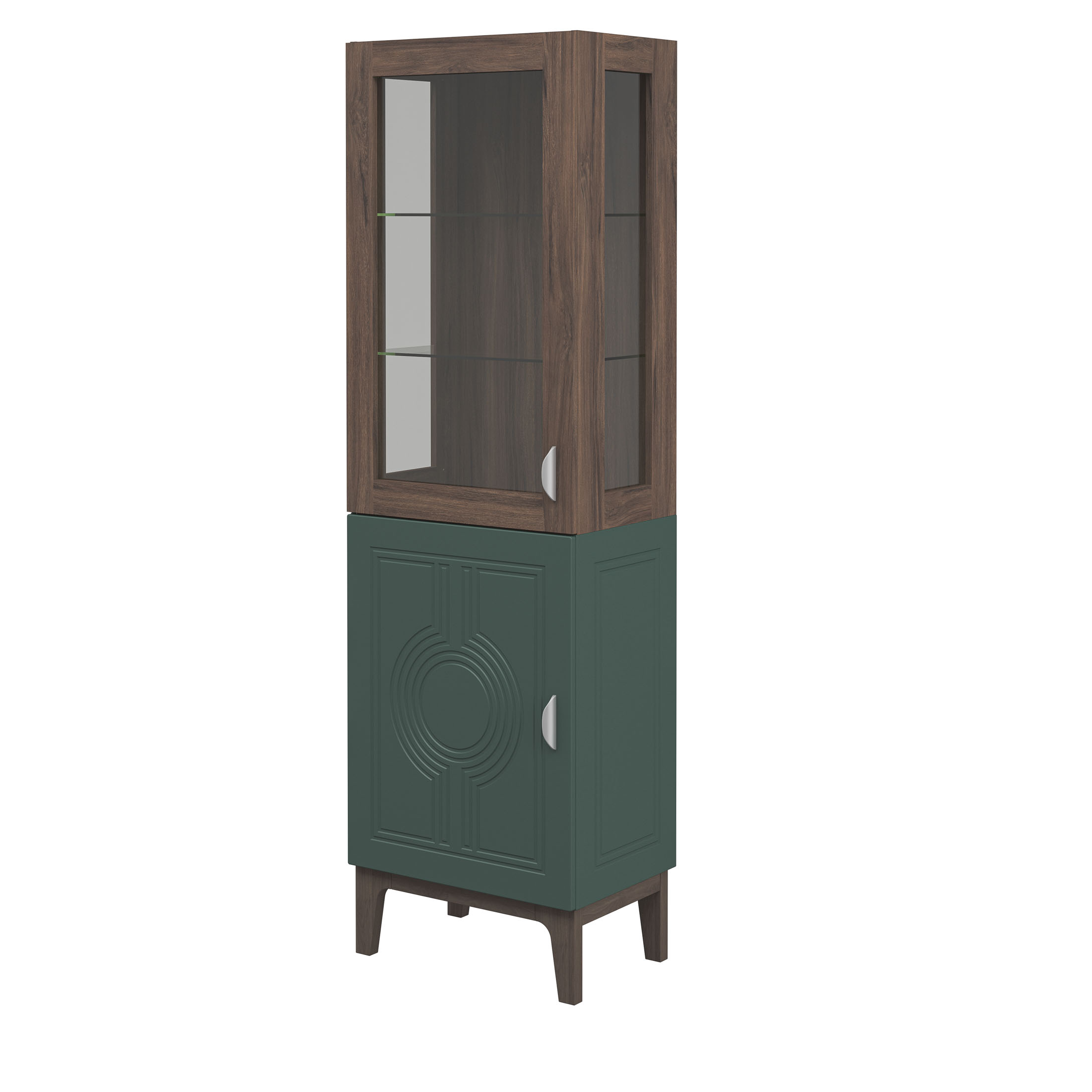 Сочетание насыщенного корпуса Гикори Прадо и акцентного фасада Комбу Грин формирует образ, в котором выразительность встречается с утончённостью. Тёплая древесная текстура наполняет интерьер уютом, а глубокий зелёный фасад придаёт пространству характер и индивидуальность.
