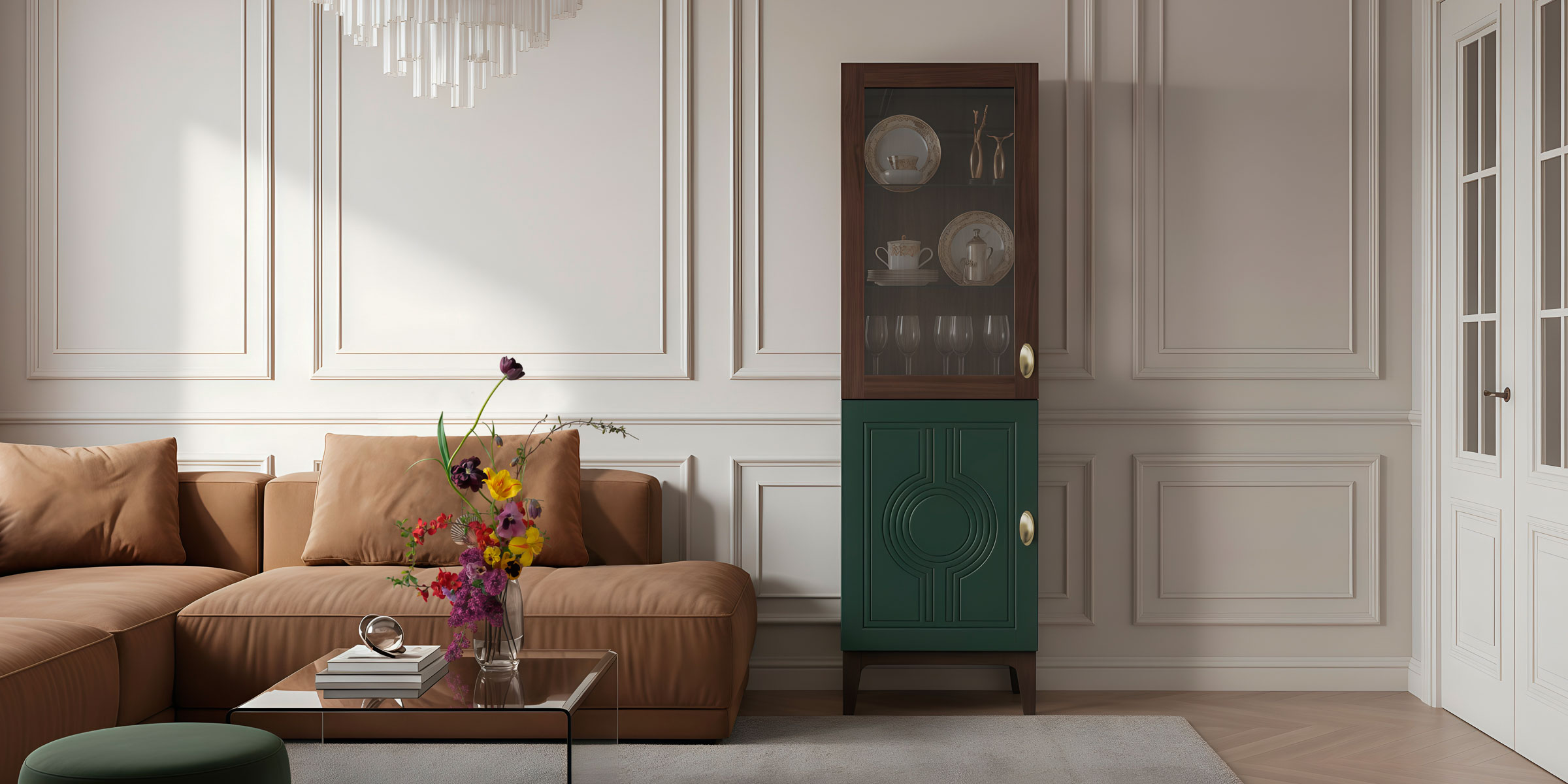 Витрины добавляют интерьеру лёгкости. Прозрачное стекло обеспечивает безупречный обзор выставленных предметов: будь то любимый декор или итальянский сервиз, добавляя интерьеру уникальную изюминку и шарм.