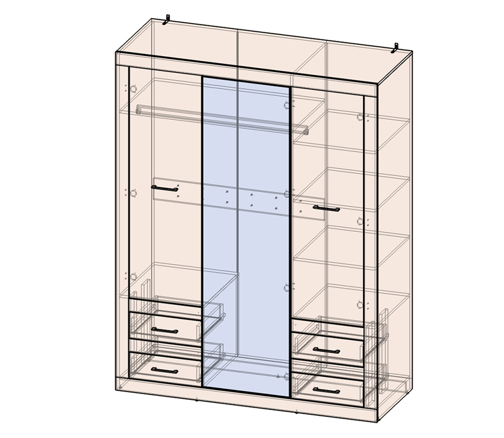 Три распашные двери. Пространство для одежды со штангой.