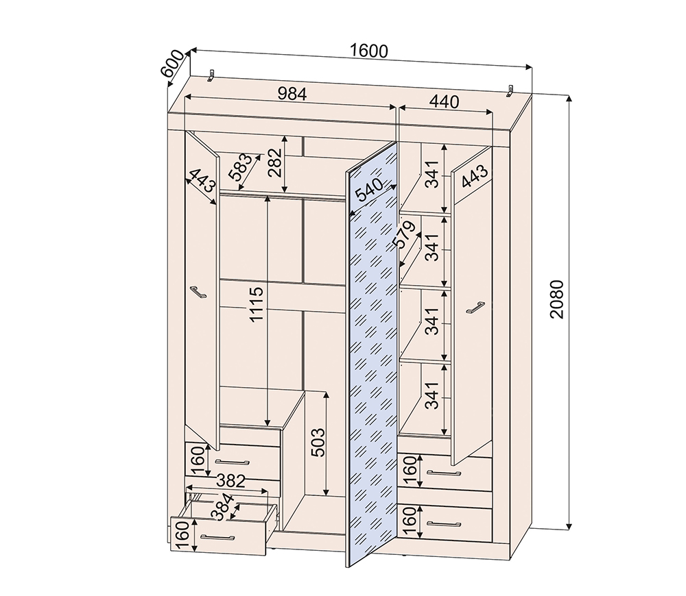 Размеры (ШxГxВ): 1600x506x2216 мм. Материал: ЛДСП.