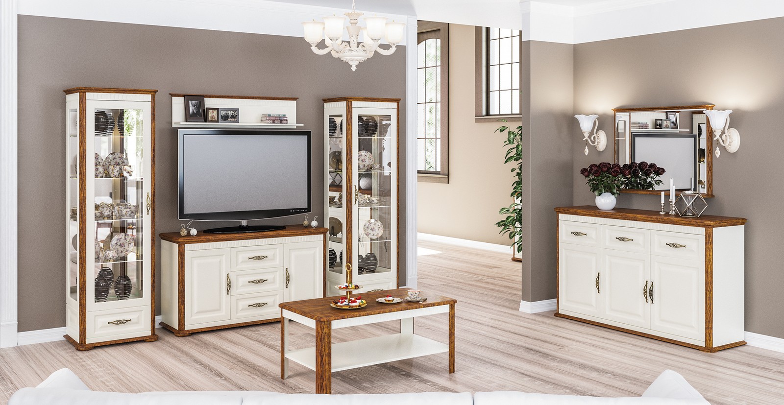 Большое количество модулей и возможных конфигураций. Материал: ЛДСП.