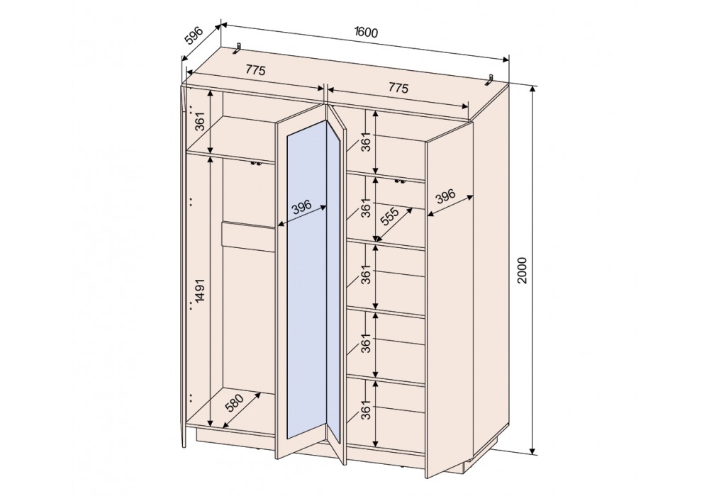 Размер: 2000х2236х506 мм. Материал: ЛДСП.