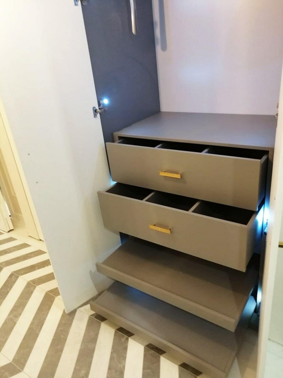 Распашной шкаф с отрытыми полками в середине