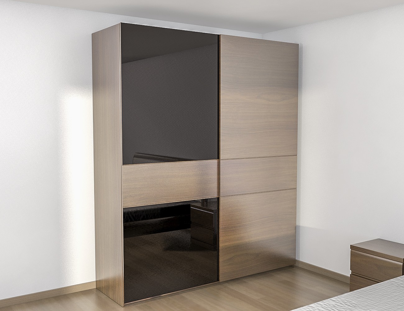 Шкаф корпусный раздвижной с черным стеклом в фасаде