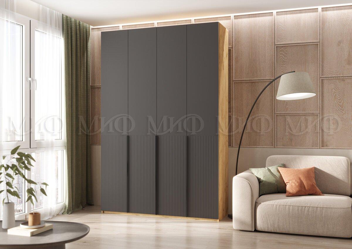 Шкаф «Марвэл» 4-х створчатый с доп. ящиками - Дуб Крафт / Браш Графит (МИФ)