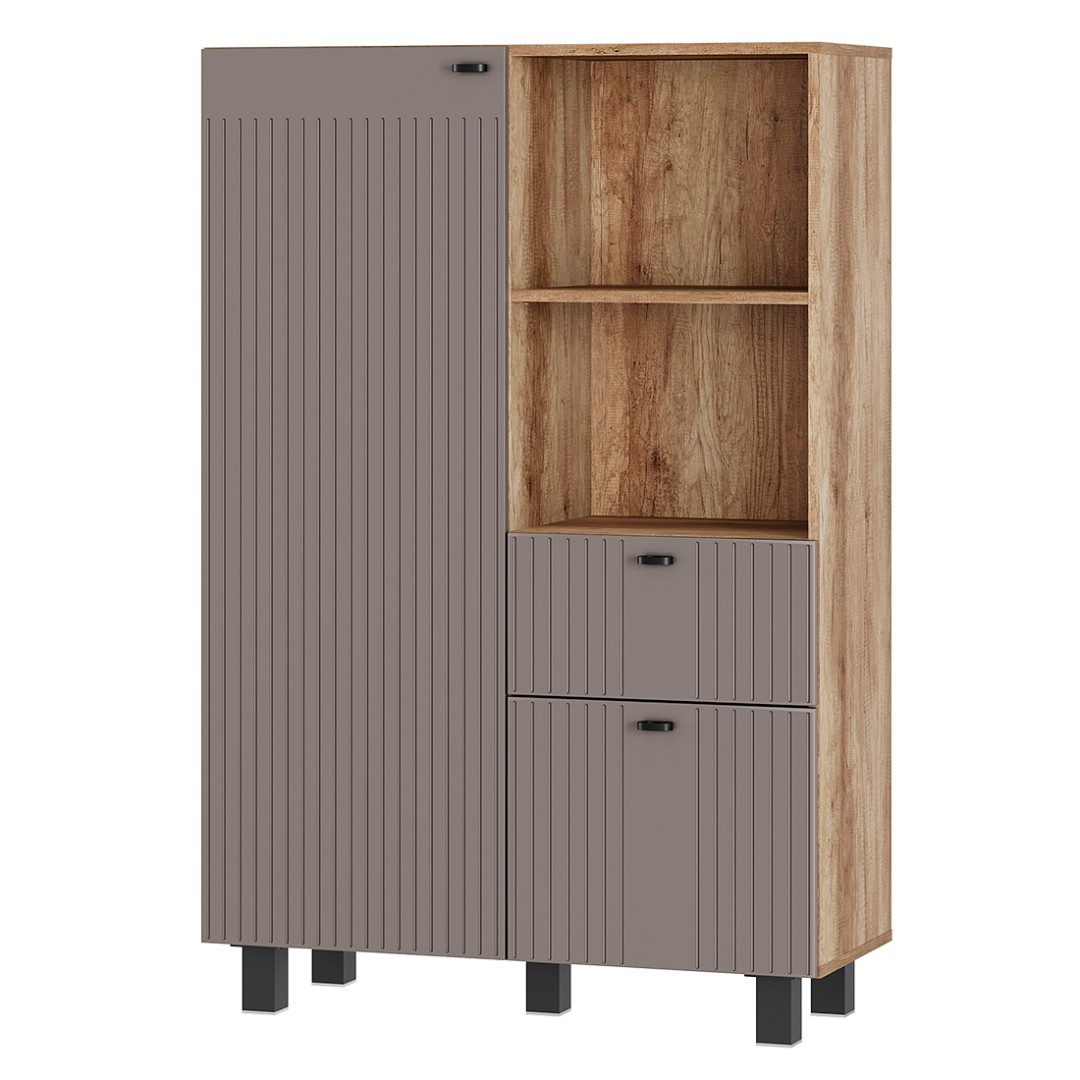 Компактный шкаф Олива – стильная, практичная и функциональная модель, которая идеально впишется в интерьер как гостиной или любой другой жилой комнаты, так и кухни. Изделие состоит из шести полок для хранения необходимых вещей и ящика на шариковых направляющих для различных мелочей. Благодаря фасадам с оригинальной фрезеровкой шкаф смотрится благородно, солидно и необычайно эффектно.
