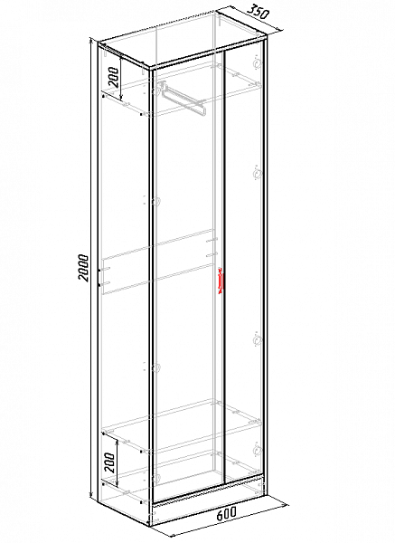 Размер (ШхГхВ): 2000х536х2200 мм. Материал: ЛДСП, МДФ.