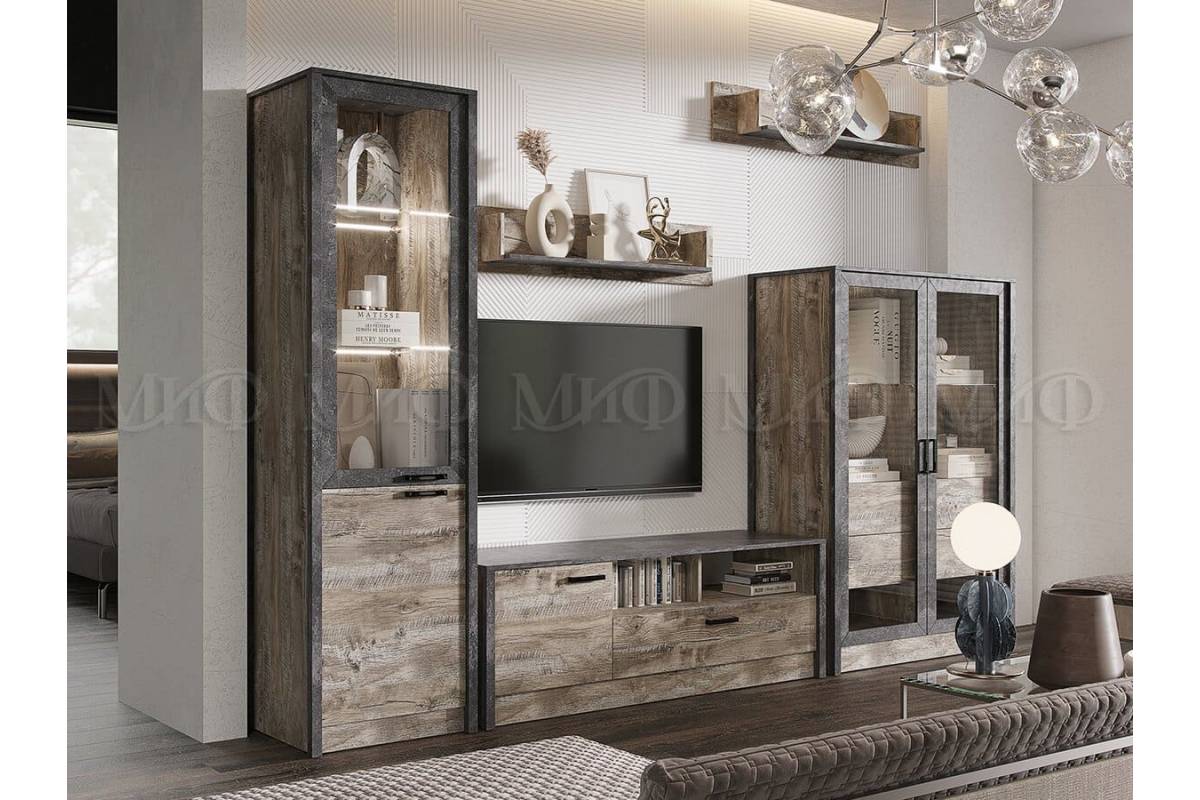 Шкаф распашной «Амели» стекло (дуб юкон - бетон темный)