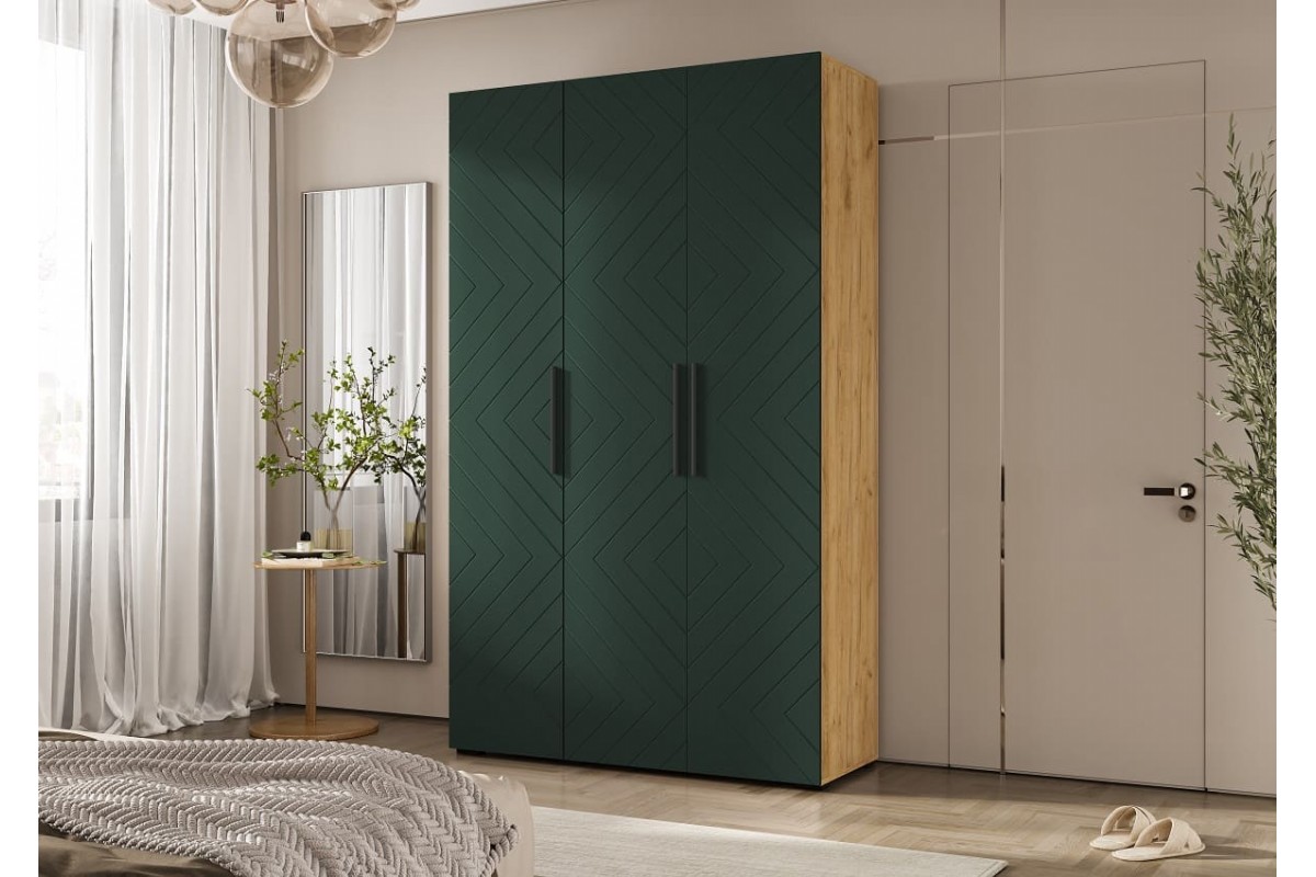 Шкаф распашной «Флэш» 3-х ств. (1350) (Браш Мени Грин - Дуб Крафт)