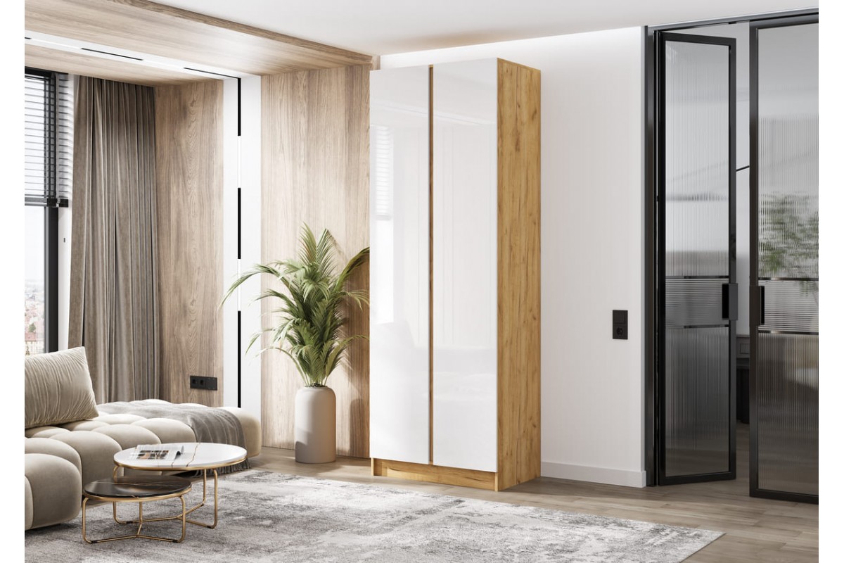 Шкаф распашной «Келвин» 2-х створчатый (дуб крафт золотой - белый глянец)