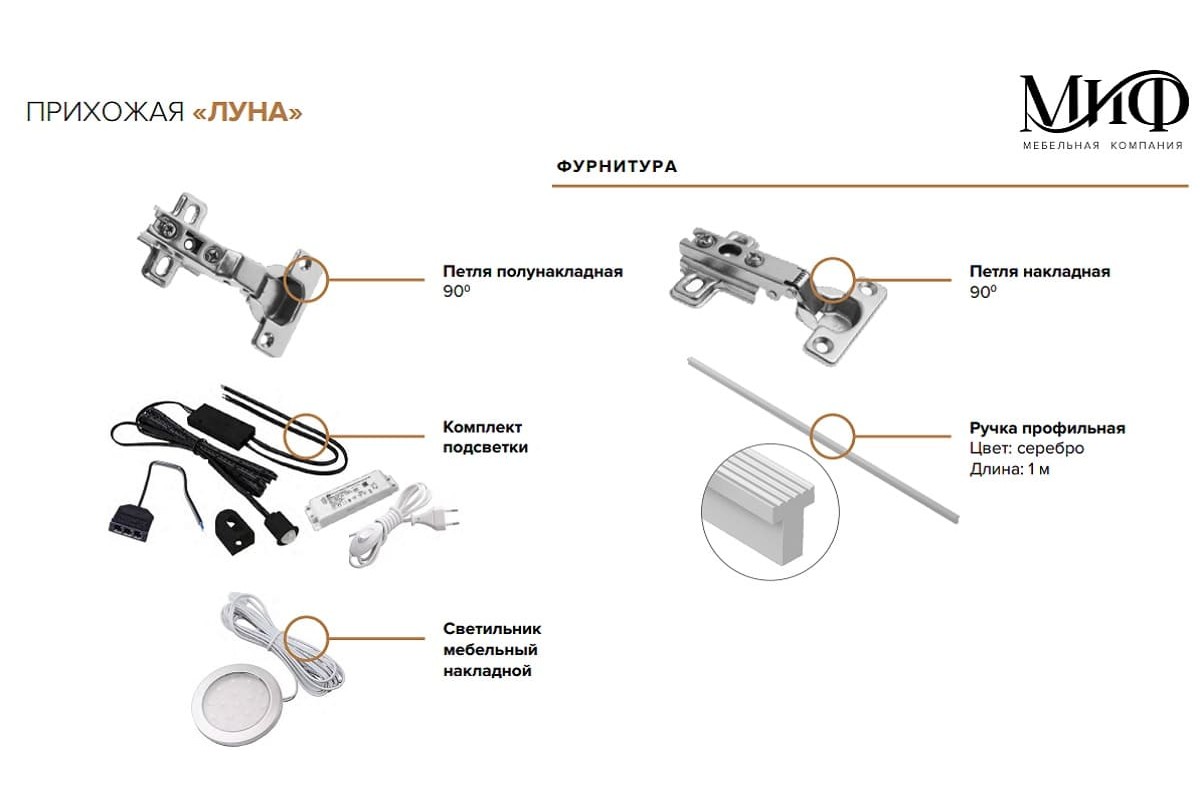 Подсветка полок: Есть. (комплект подсветки, светильник мебельный накладной).
