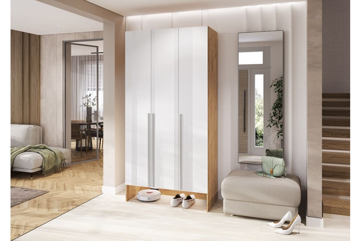 Шкаф распашной «Луна» высота 240 см (Дуб Крафт золотой - Браш Вайт)