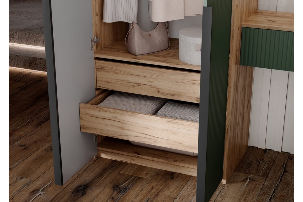 Шкаф распашной «Марвэл» 2-х дв высота 240 с доп ящиками (дуб крафт золотой - браш мени грин)