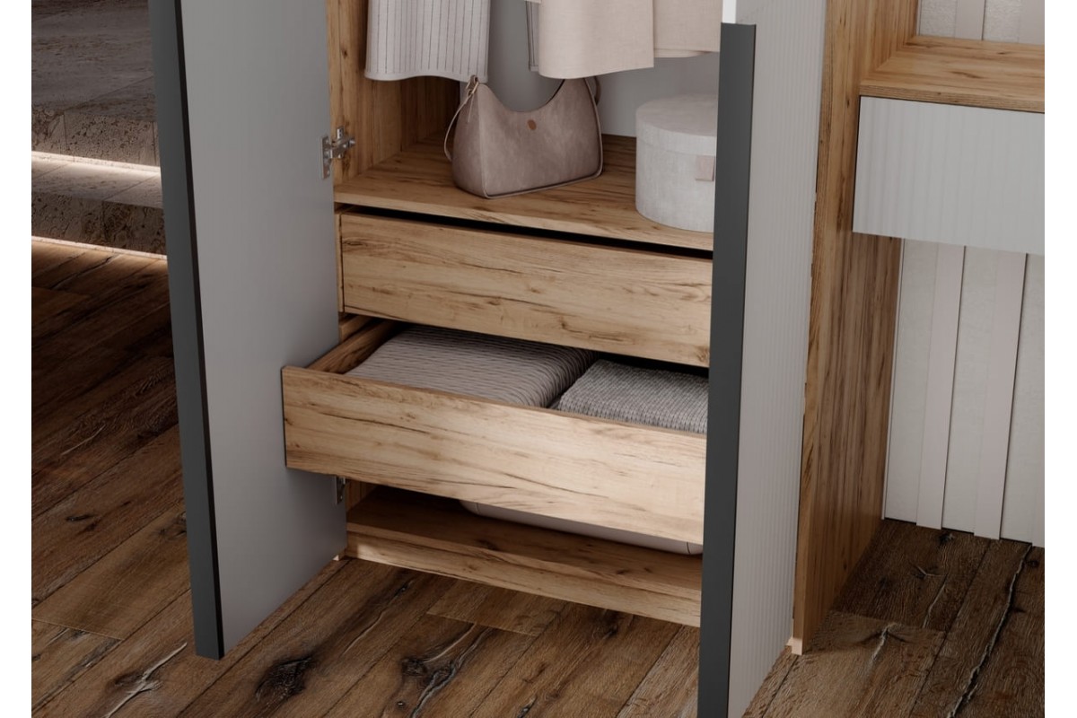 Шкаф распашной «Марвэл» 2-х дв высота 240 с доп ящиками (дуб крафт золотой - браш вайт)