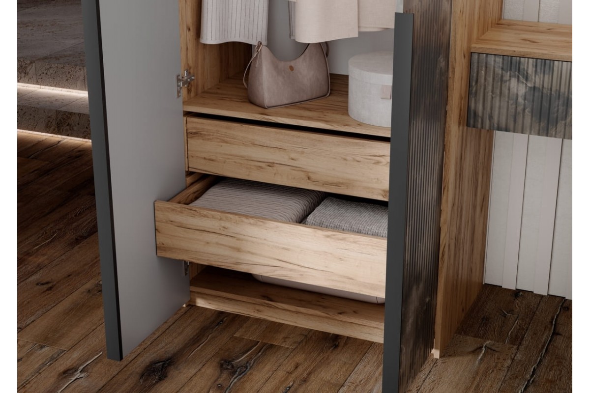 Шкаф распашной «Марвэл» 2-х дв высота 240 с доп ящиками (дуб крафт золотой - мальта грей)