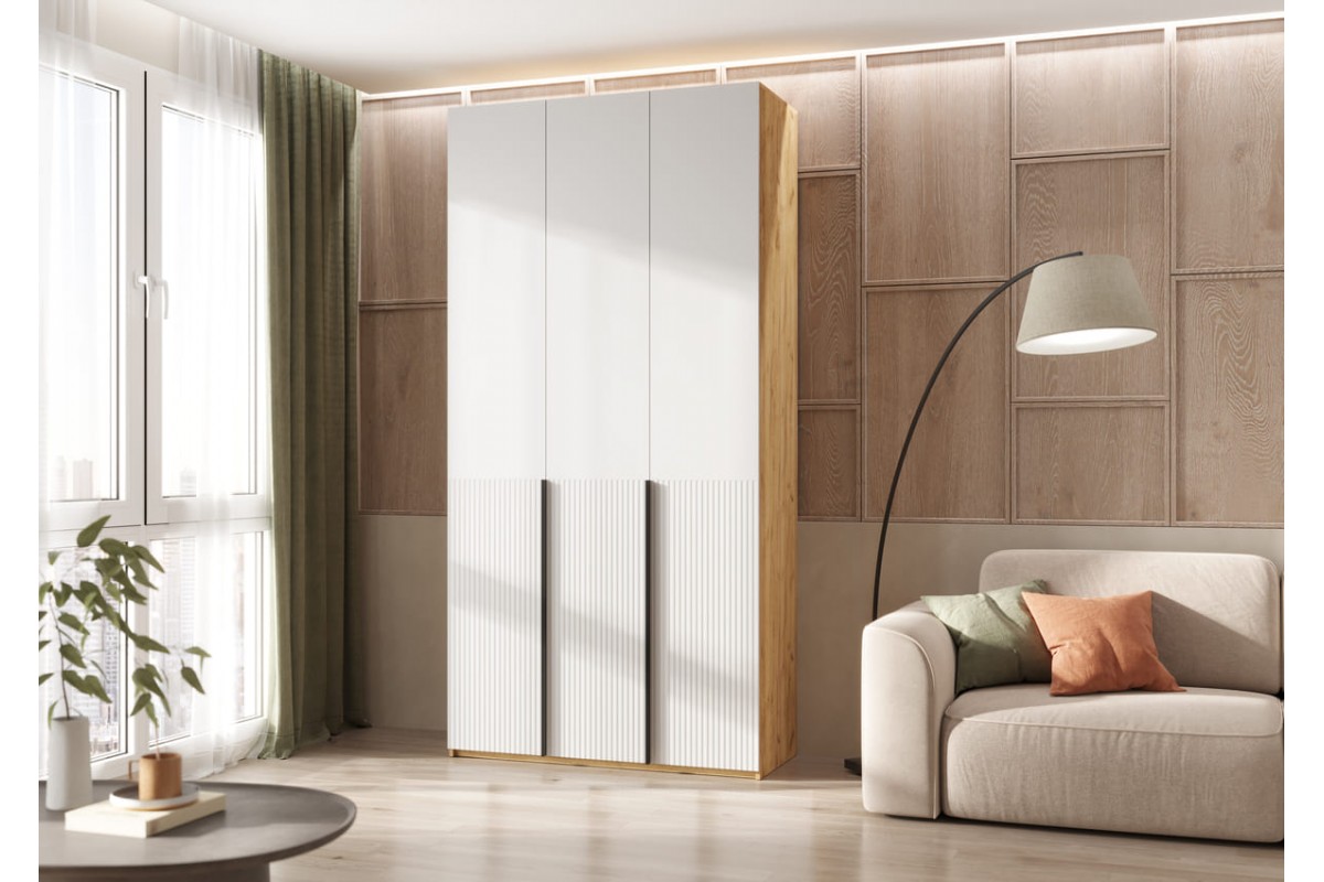Шкаф распашной «Марвэл» 3-х дв высота 240 с доп ящиками (дуб крафт золотой - браш вайт)