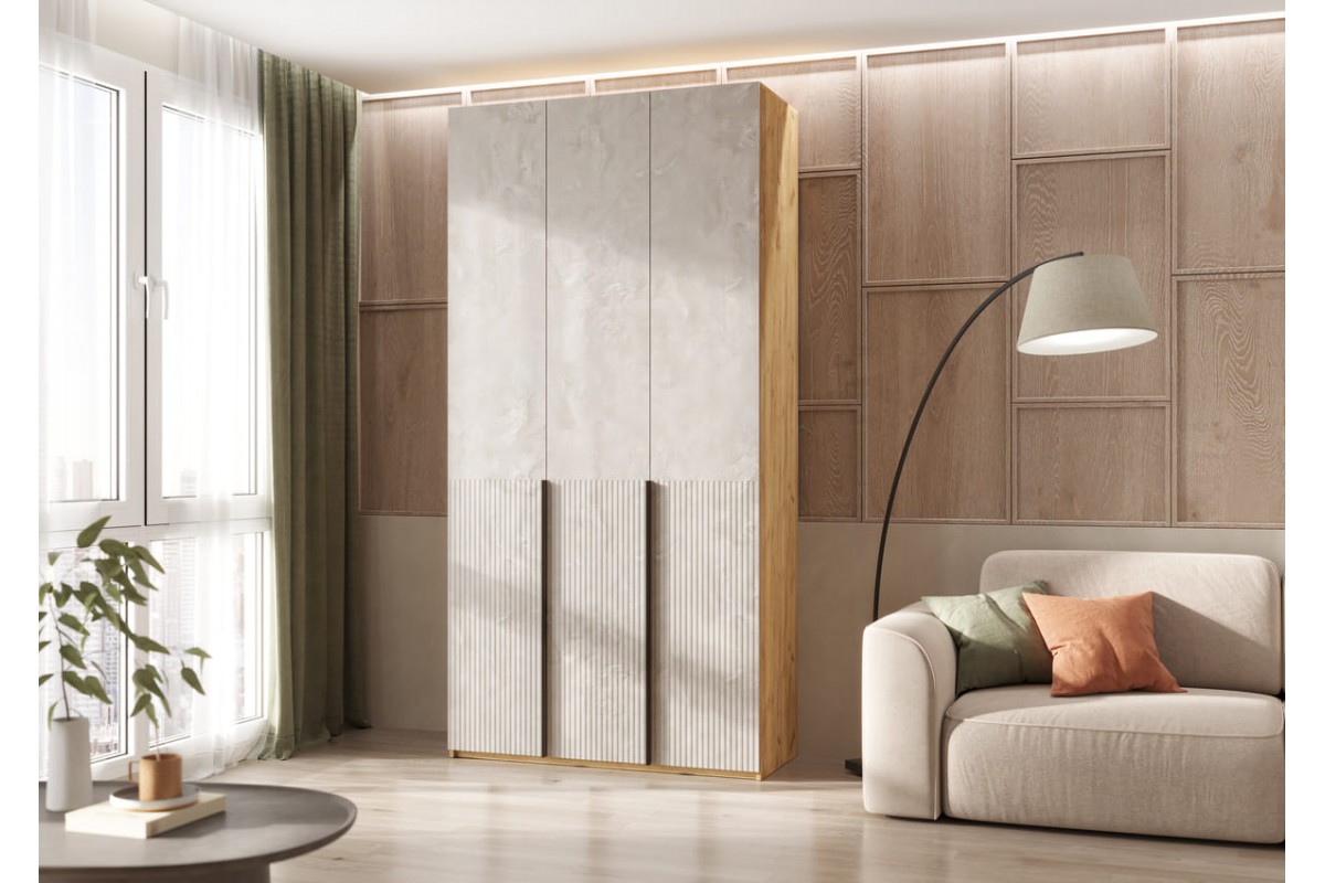 Шкаф распашной «Марвэл» 3-х дв высота 240 с доп ящиками (дуб крафт золотой - мальта)