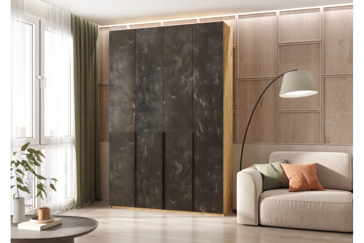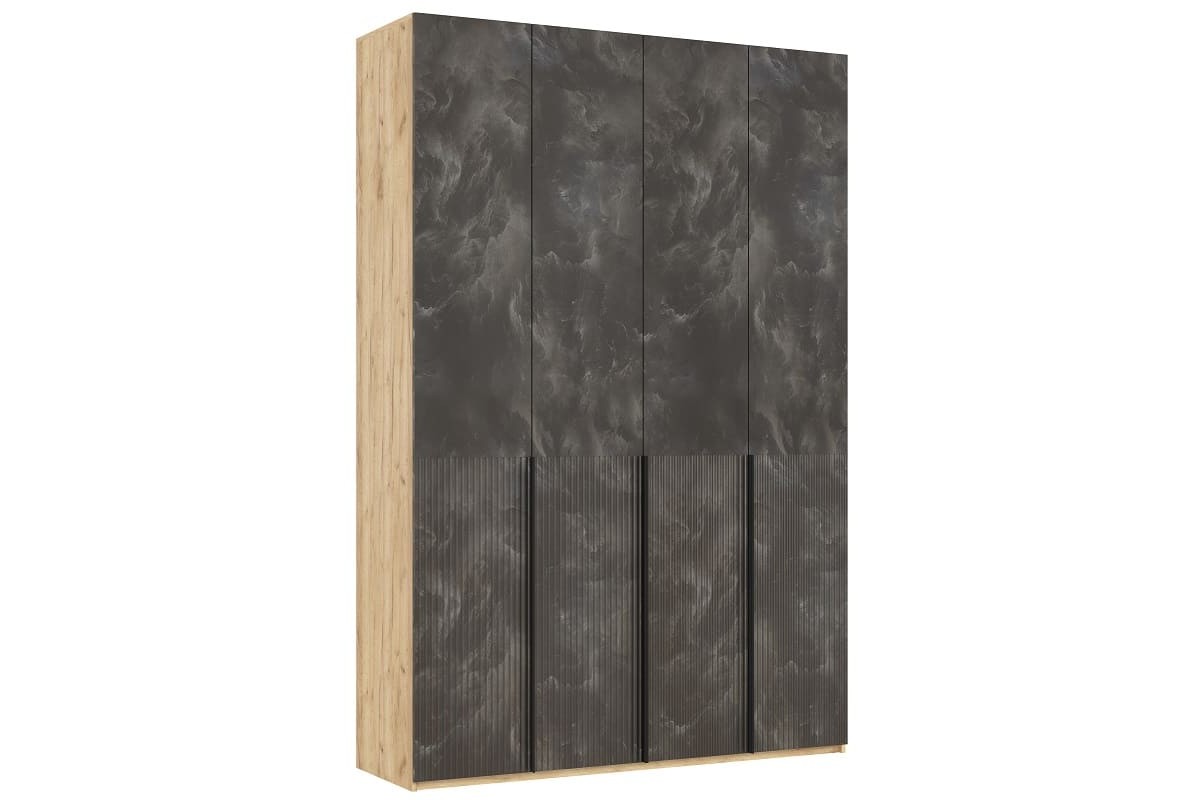 Шкаф распашной «Марвэл» 4-х дв высота 240 с доп ящиками (дуб крафт золотой - браш графит)