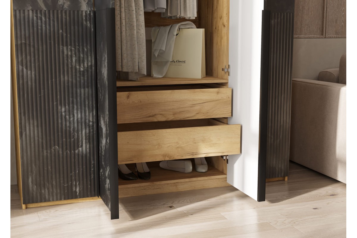 Шкаф распашной «Марвэл» 2-х дв высота 240 с доп ящиками (дуб крафт золотой - браш графит)