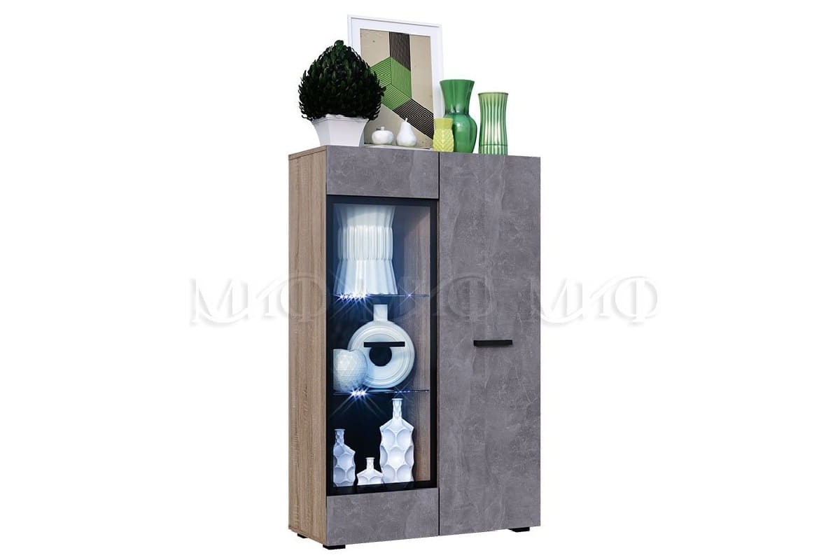 Шкаф распашной «Нэнси» с витриной исп 2 (бетон светлый - дуб сонома)