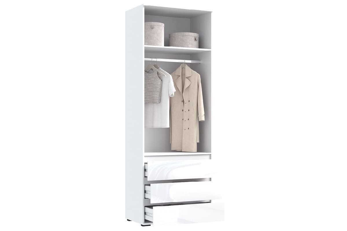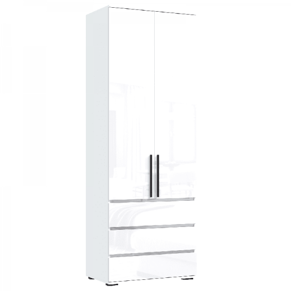 Шкаф распашной «Норд» 2-х ств с ящиками (800) Белый - Белый глянец