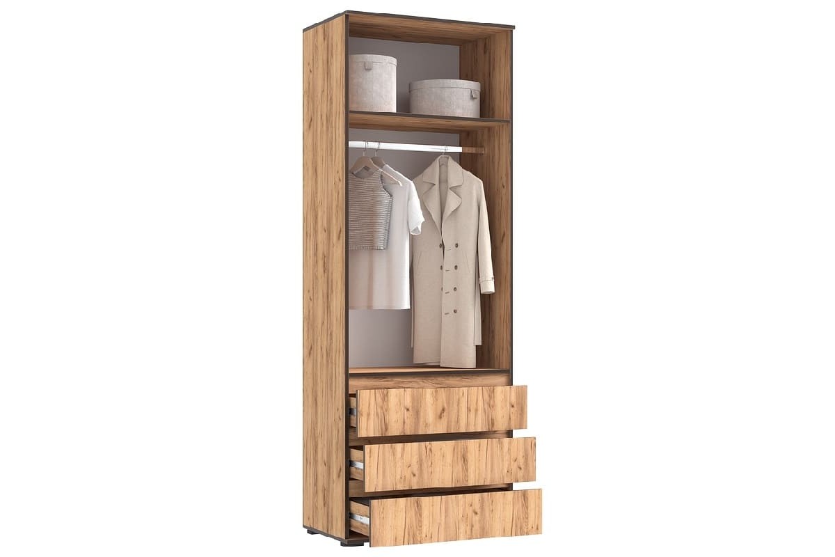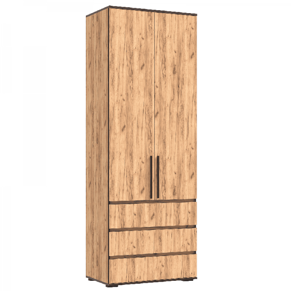 Шкаф распашной «Норд» 2-х ств с ящиками (800) Дуб Крафт Золотой (кромка Венге)