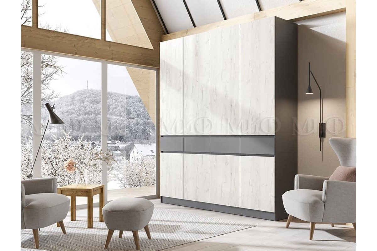 Шкаф распашной «Роджина» высота 240 см 4-х дверный (графит - дуб крафт белый)