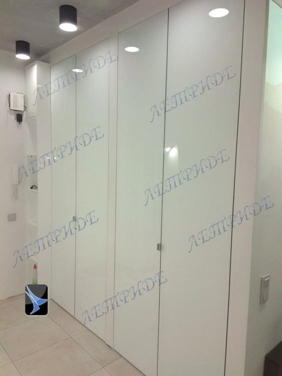 Фасады: распашные Z-профиль, вставка Лакобель "ультро-белый" 9003