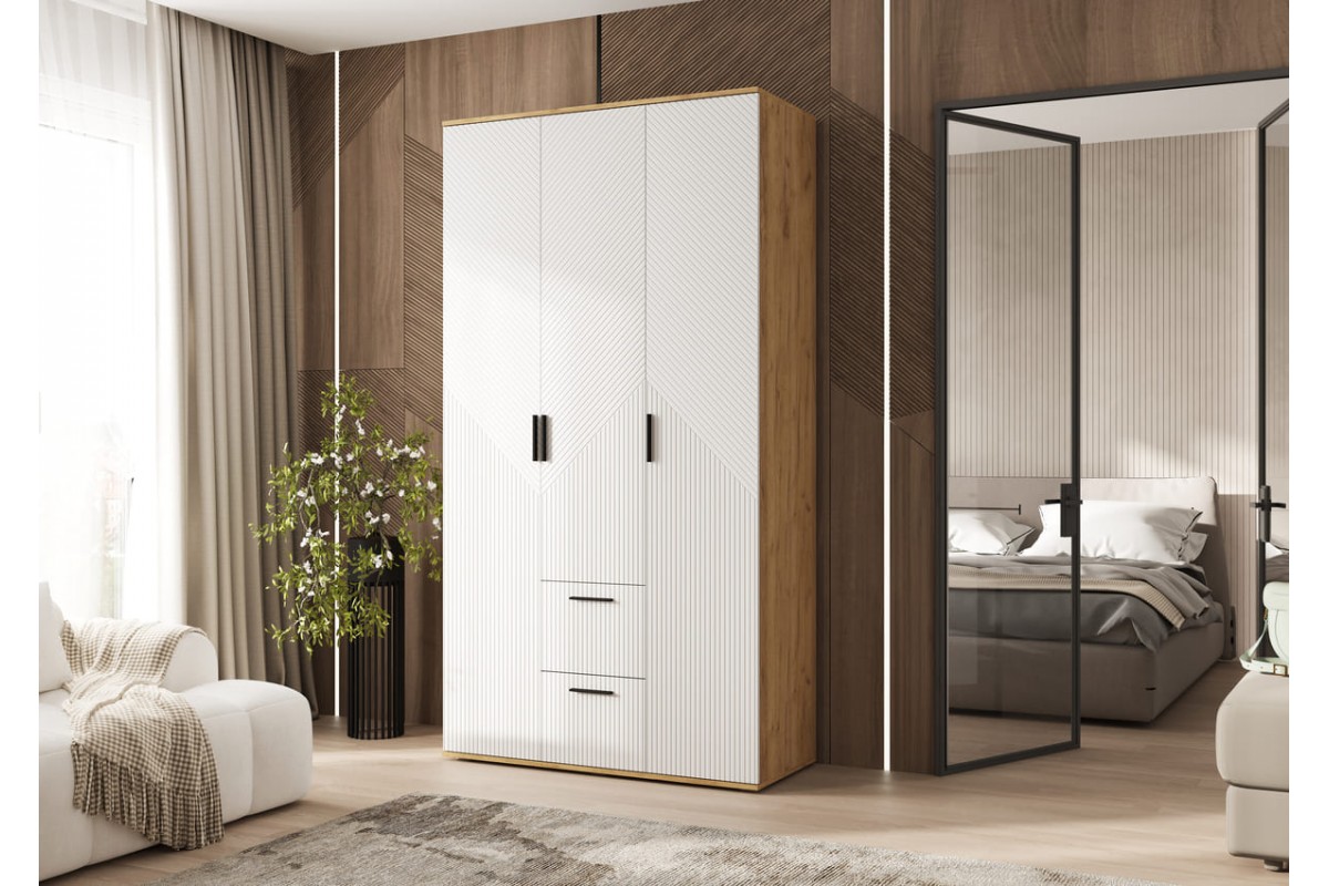 Шкаф распашной «Сильвия 3-х ств» Браш Вайт - Дуб Крафт