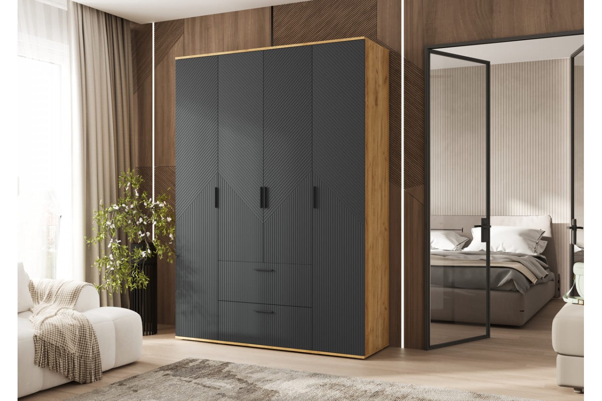 Шкаф распашной «Сильвия 4-х ств» Браш Графит - Дуб Крафт