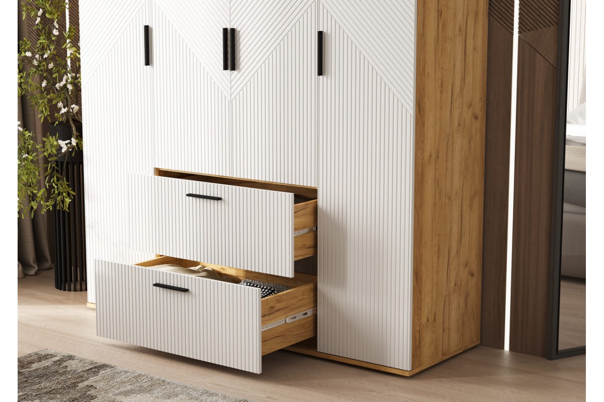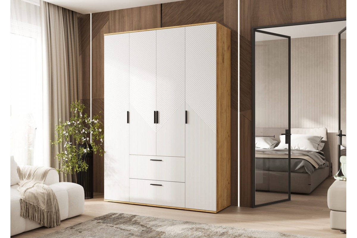 Шкаф распашной «Сильвия 4-х ств» Браш Вайт - Дуб Крафт