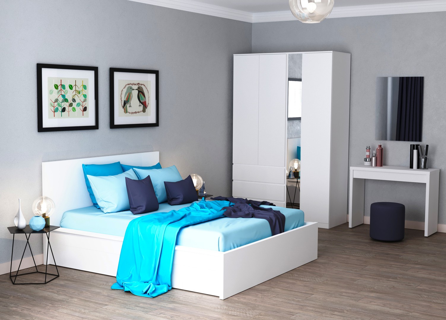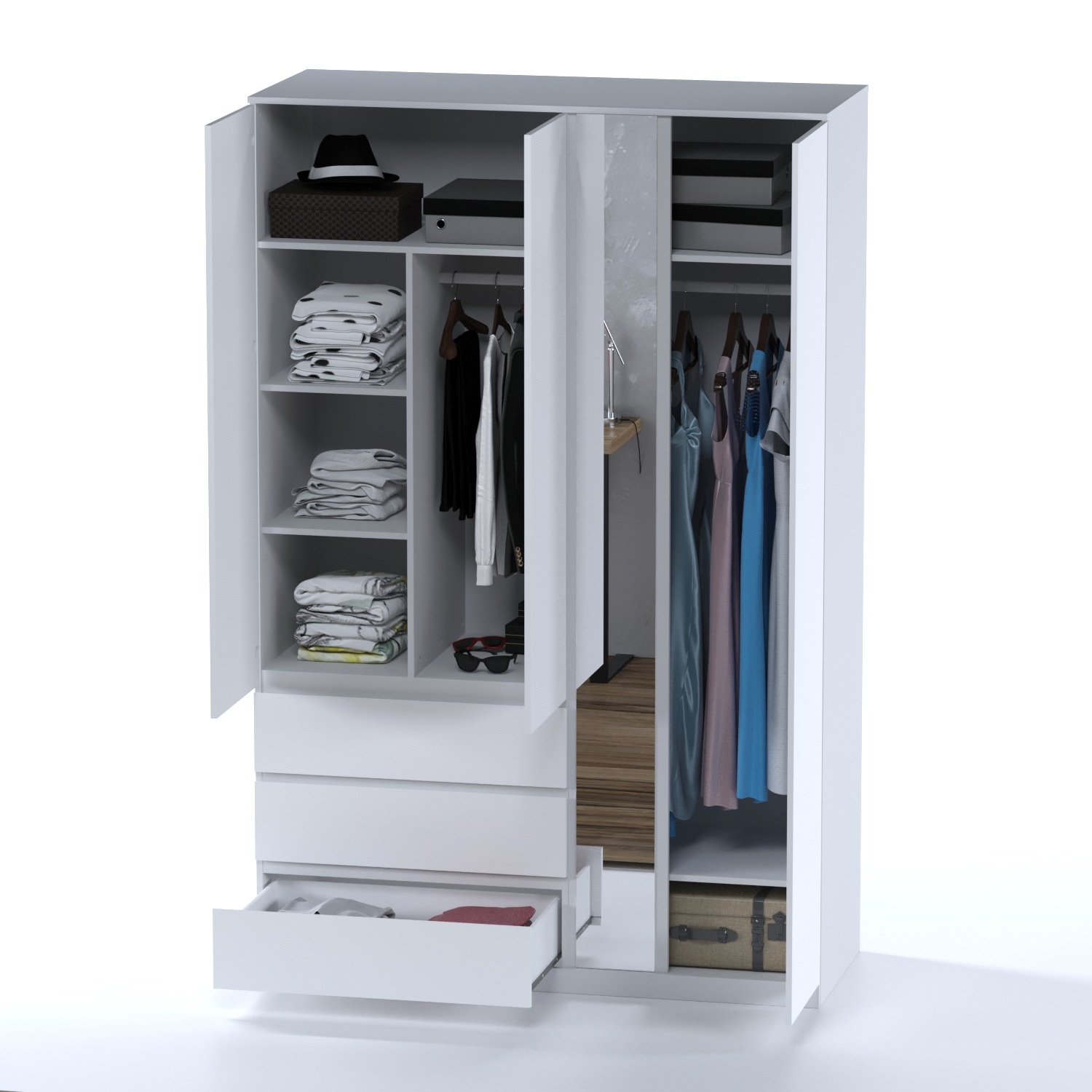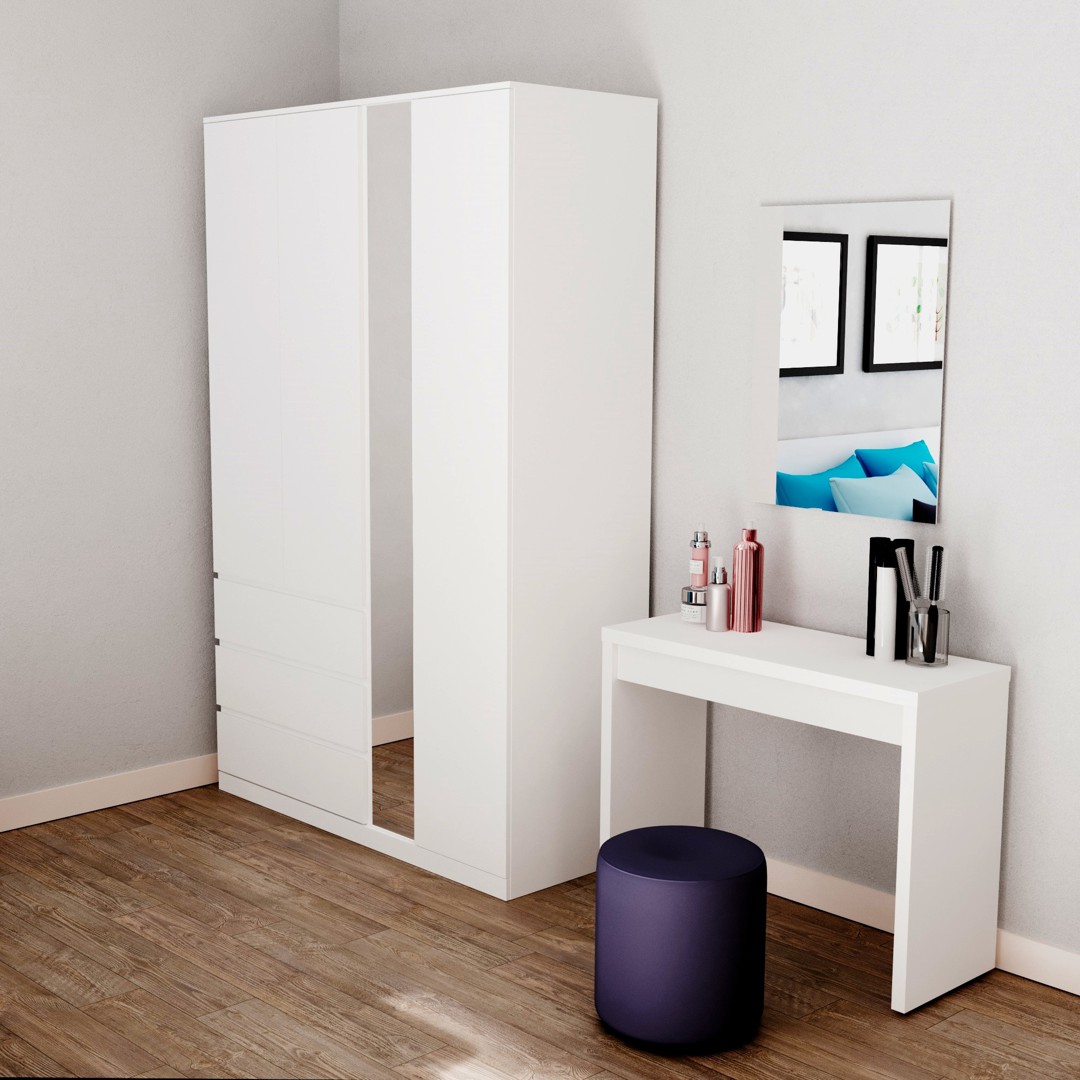 Шкаф в спальню с макияжным столом и шуфлядами под белье