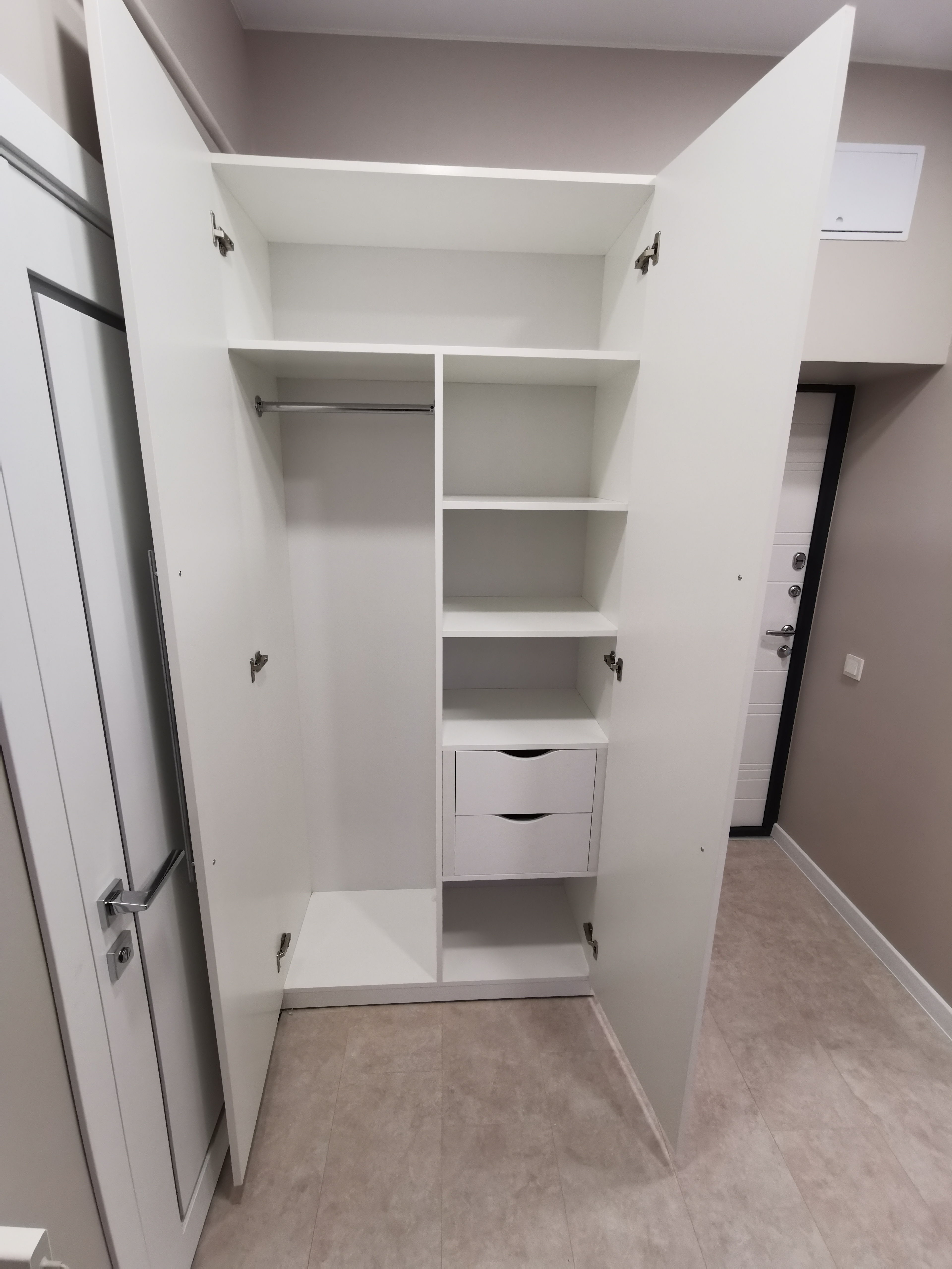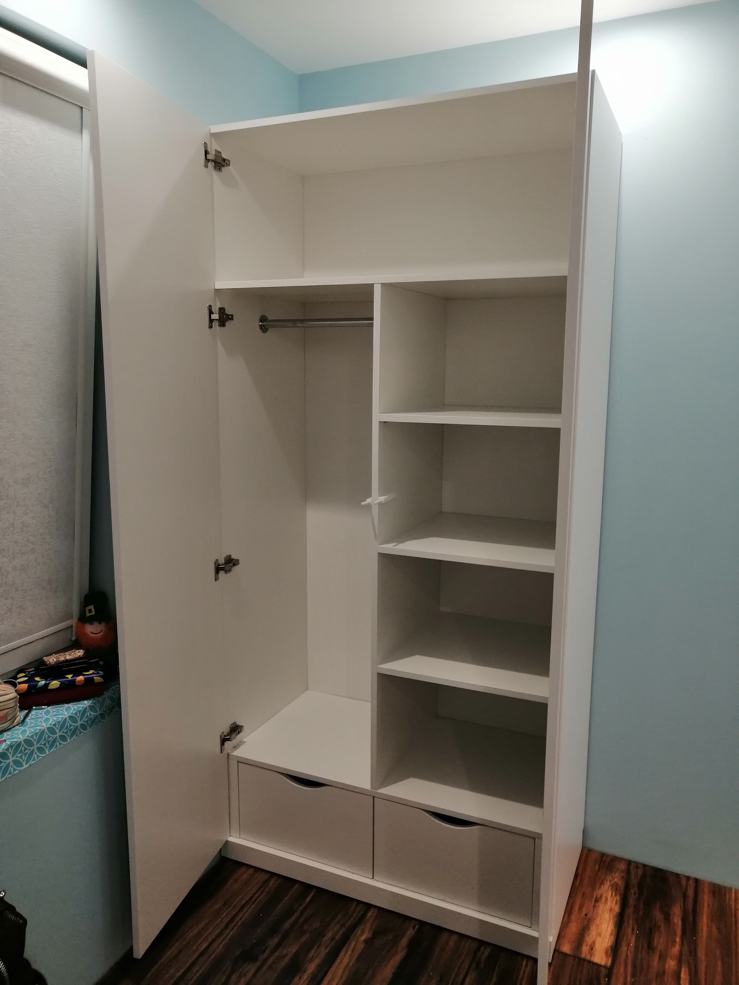 Распашной двухдверный шкаф для одежды. Подойдет для детской, спальни, прихожей.