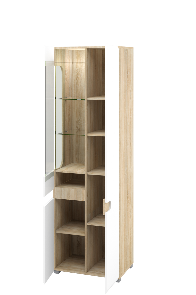Шкаф с витриной «Леонардо МН-026-01» (белый, дуб сонома)