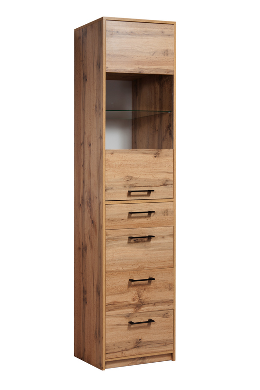 Шкаф с витриной Техас отличается интересным цветовым оформлением с сочетанием цветов – «Дуб Вотан» и «Дуб Вотан/графит». Помимо этого, заслуживает внимания и качество конструкции. Изделие изготовлено из ЛДСП – современного материала, который в полной мере обеспечивает надежность, практичность и легкость в использовании рассматриваемого элемента мебели.Шкаф вместителен и удобен. Его параметры – гарантируют максимальный комфорт в эксплуатации, создавая оптимальные условия для хранения определенного количества вещей.Такой элемент мебели станет стильным и качественным дополнением уже имеющегося интерьера.