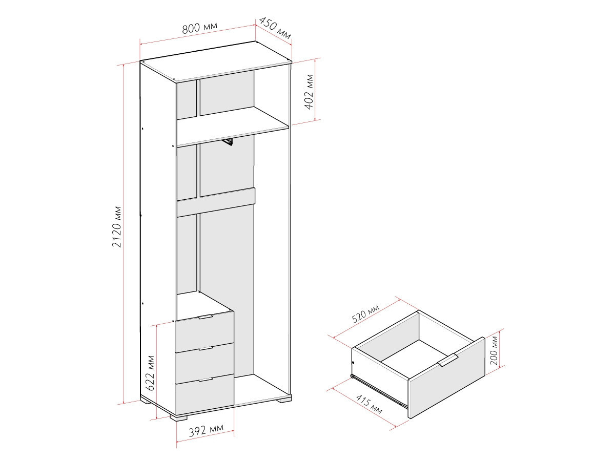 Размер (ШхВхГ): 94х205х41 см. Материал: ЛДСП, МДФ.