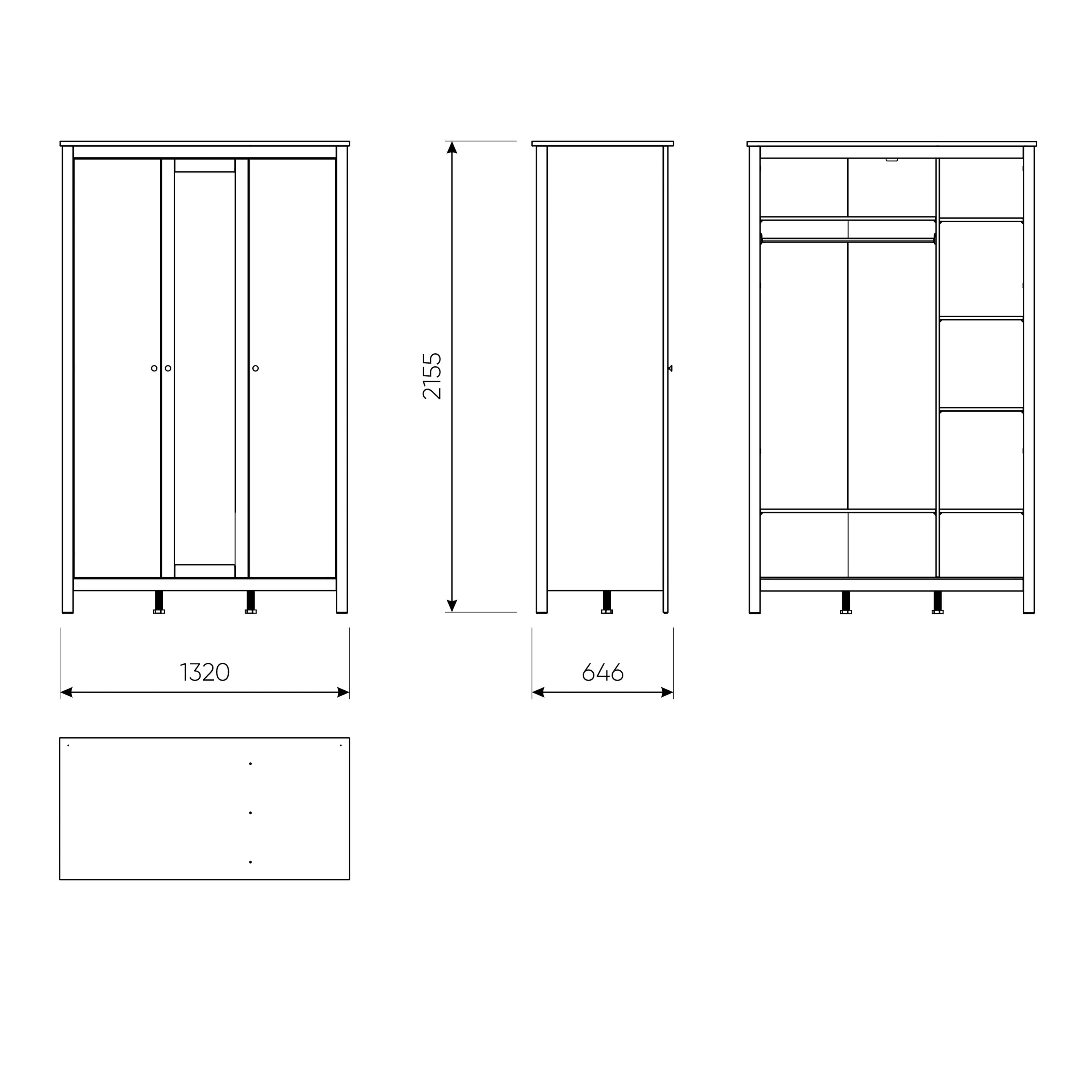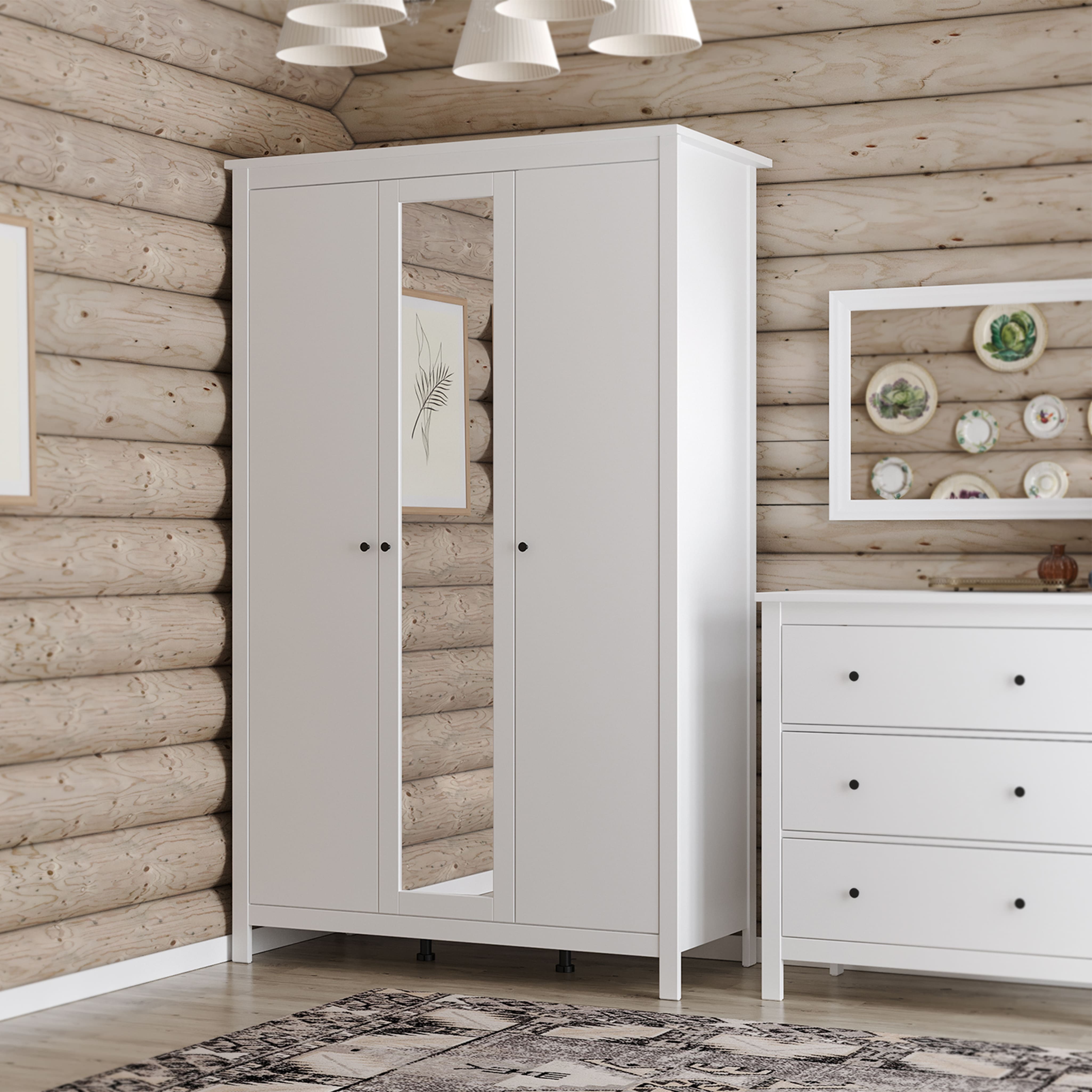 Шкаф «САГА» 132х64,6х215,5, белый (3 двери+1 зеркало) (2.08.01.040.1 RU)
