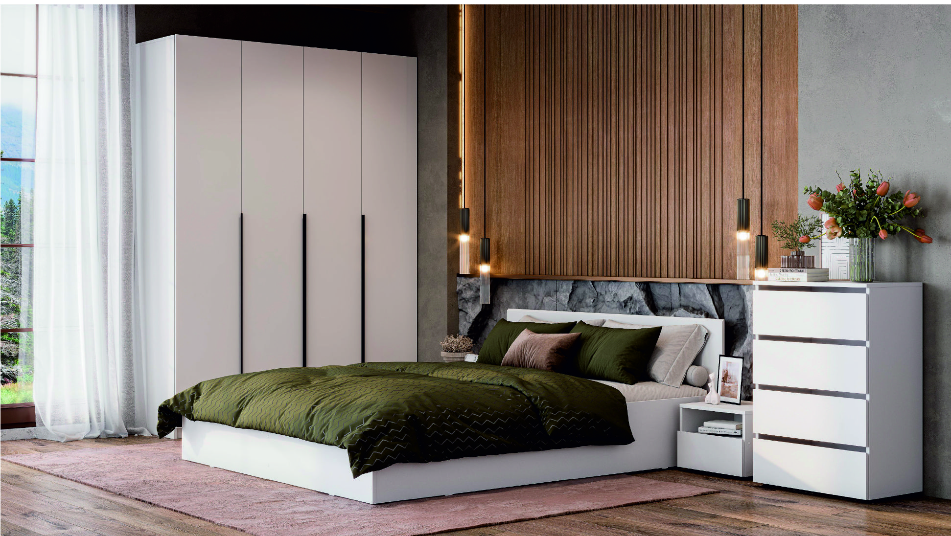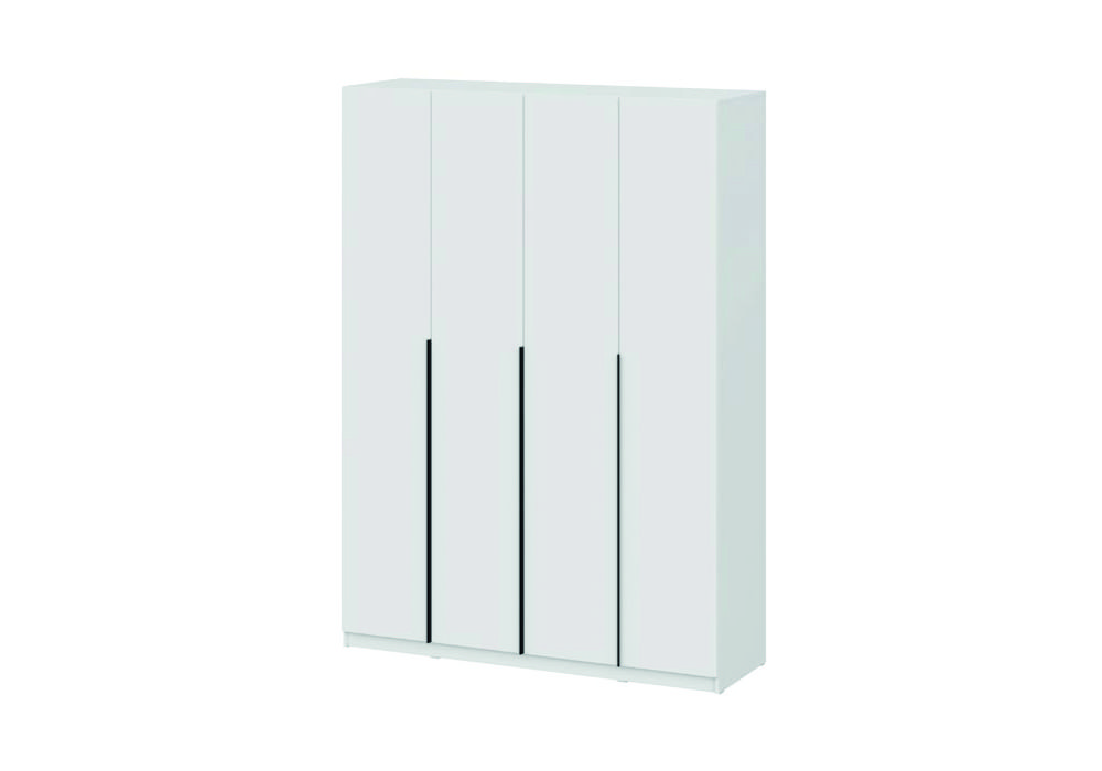 Ищете идеальный шкаф для организации пространства и хранения вещей? Этот 4-дверный корпусный шкаф для одежды выполнен в элегантном белом текстурном цвете из высококачественного ЛДСП, что придает ему стильный и современный вид. Черные вертикальные ручки добавляют изюминку и контраст, подчеркивая утонченный дизайн.