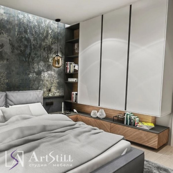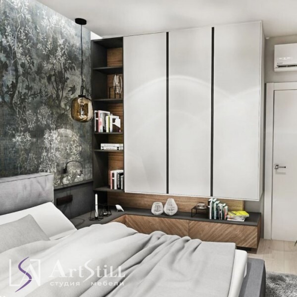 Шкаф выполнен в «Современном стиле». Верхняя часть со съемными полками. Шкаф на заказ исполнен до потолка.