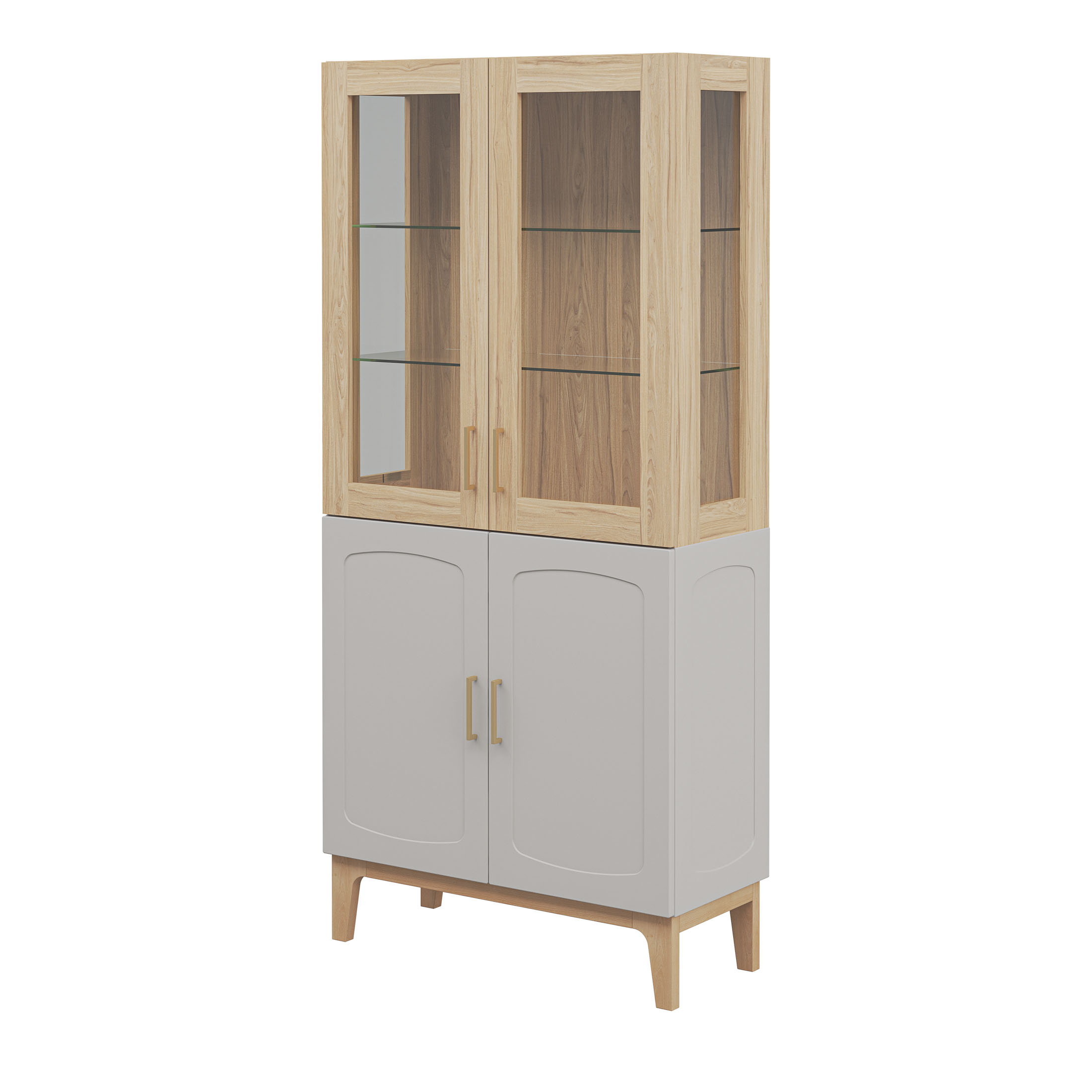 Изящные ножки из массива дерева придают композиции воздушность и визуально расширяют пространство, наполняя его светом. Инновационное матовое покрытие фасадов – это тактильное наслаждение, мягкая бархатистая поверхность, которая словно приглашает прикоснуться. Стеклянные витрины добавляют лёгкость и глубину, создавая эффект простора и ощущение порядка.