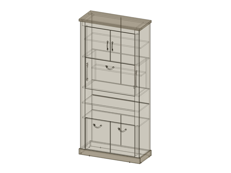 код 118767Шкаф для комнаты или гостиной с множеством отделений. Распашные и откидные дверцы.