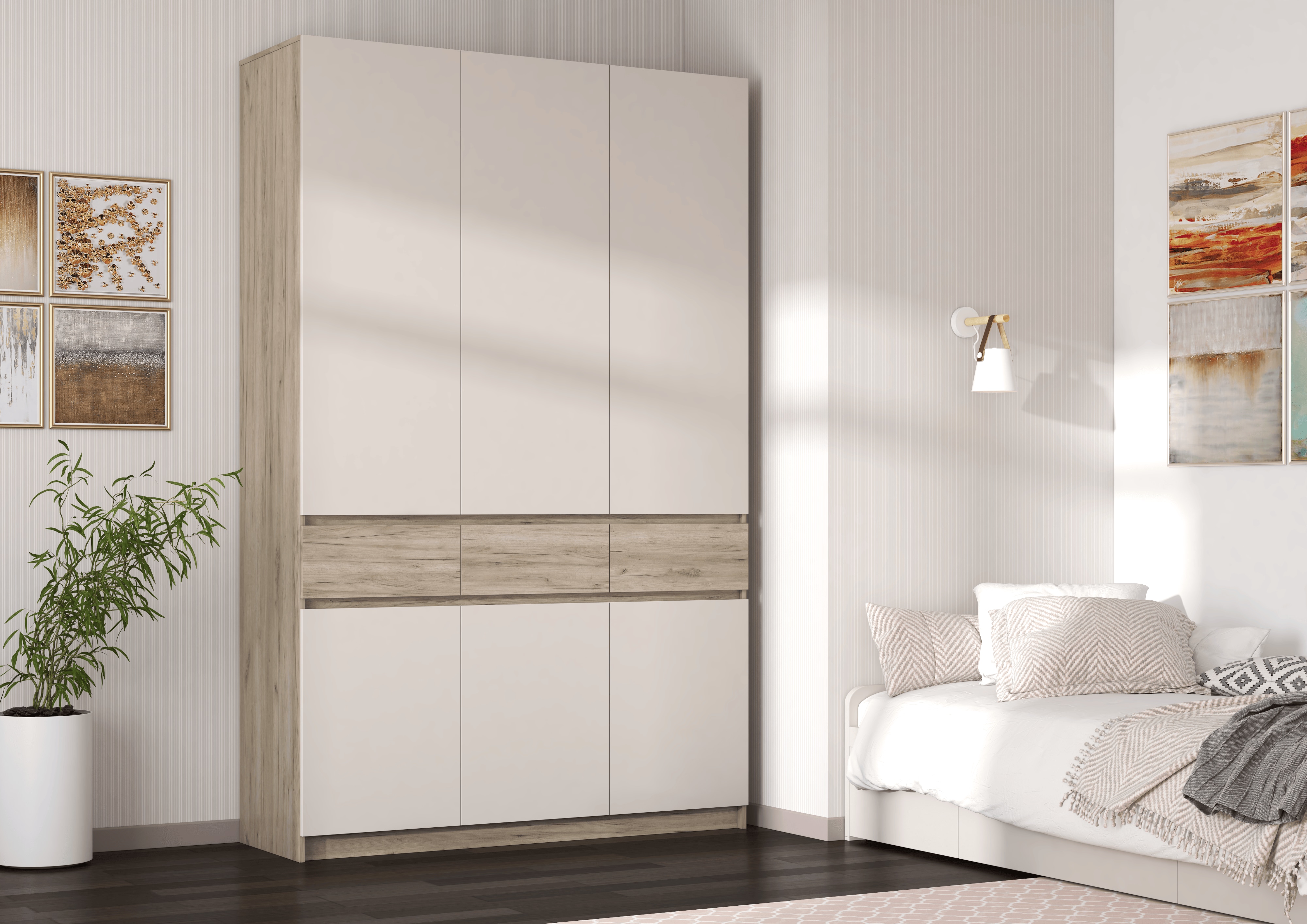 Шкаф трехстворчатый «Бостон ШК-002» (дуб крафт серый/ЛДСП кашемир)